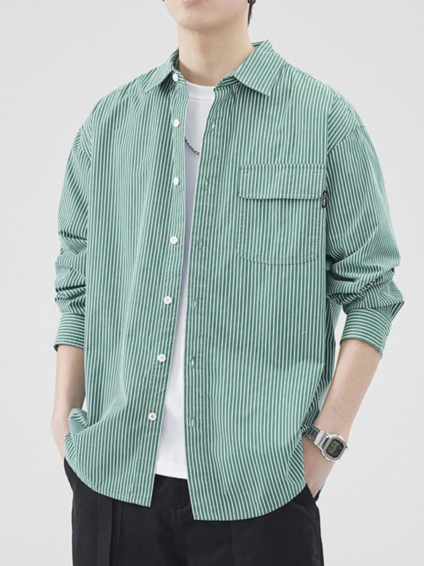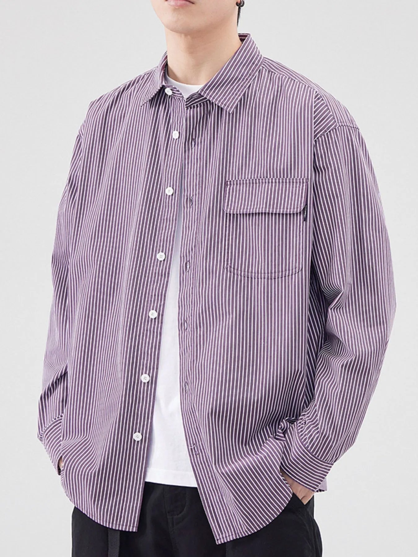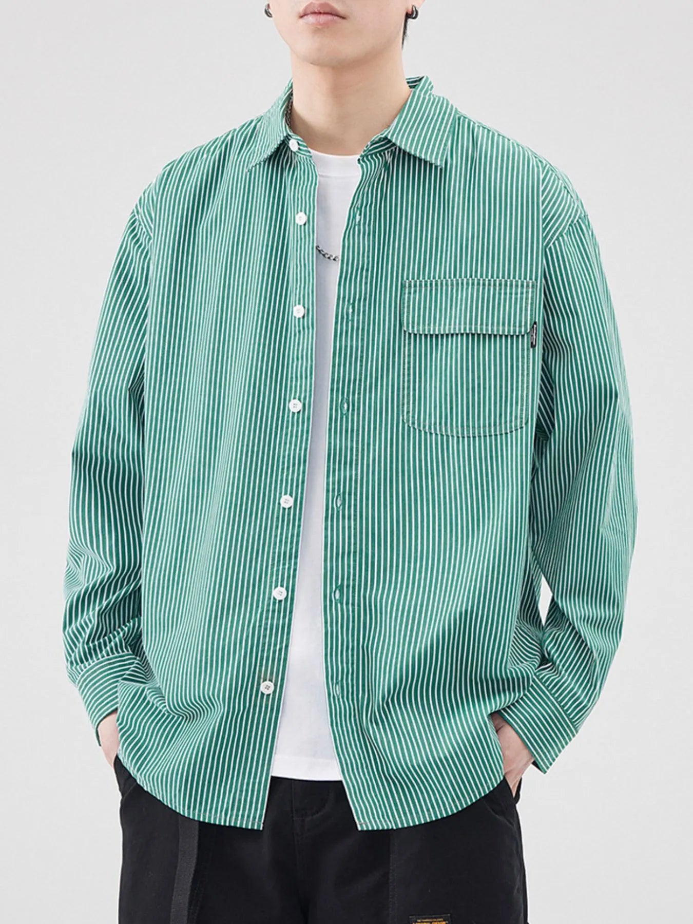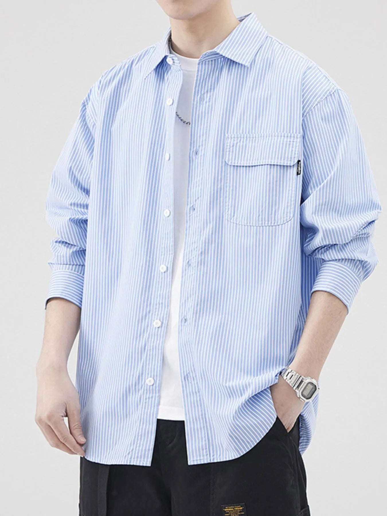 Men's Striped Button Up Long Sleeve Shirt - 95%cotton