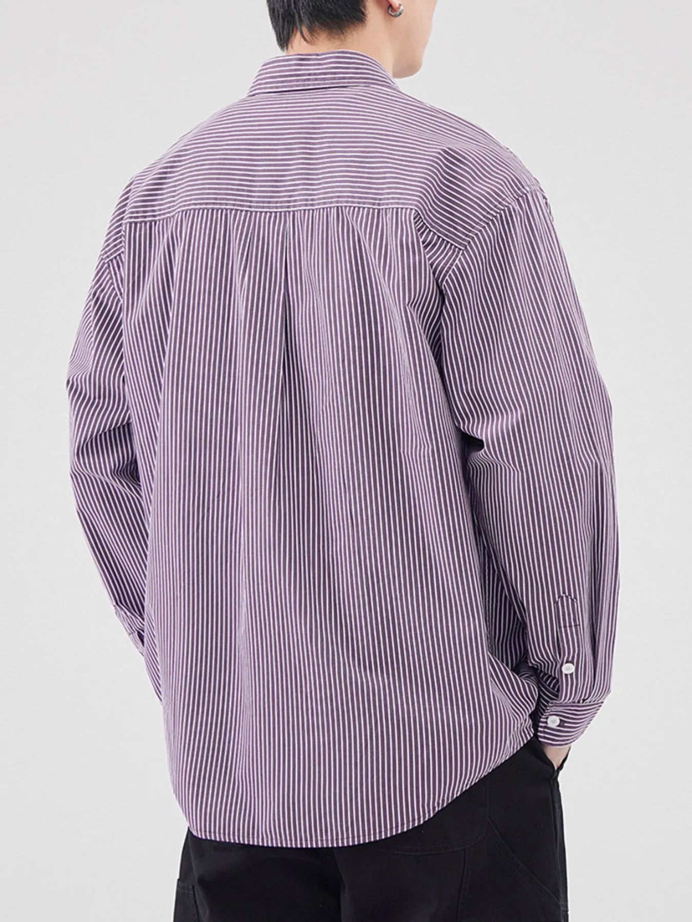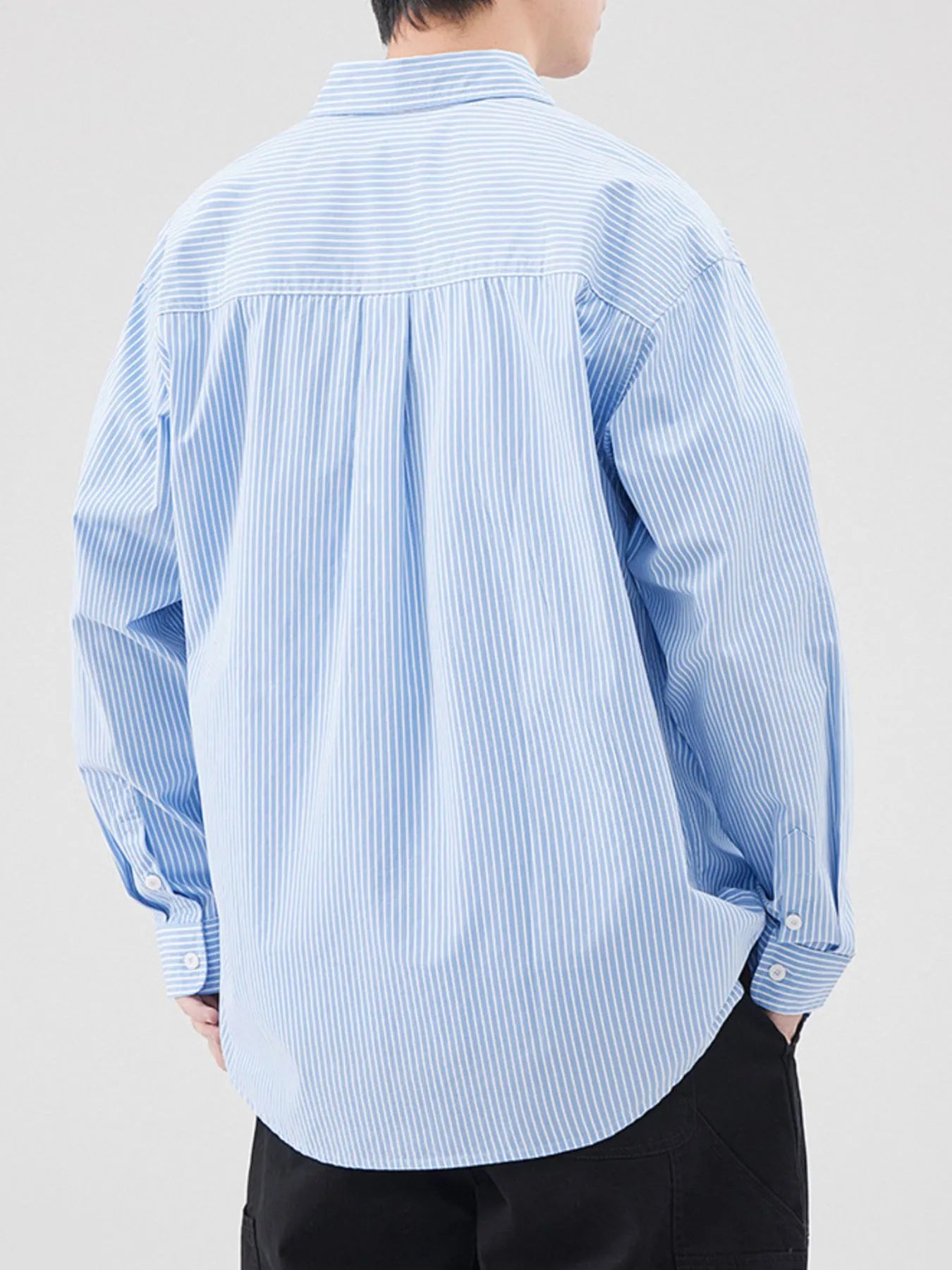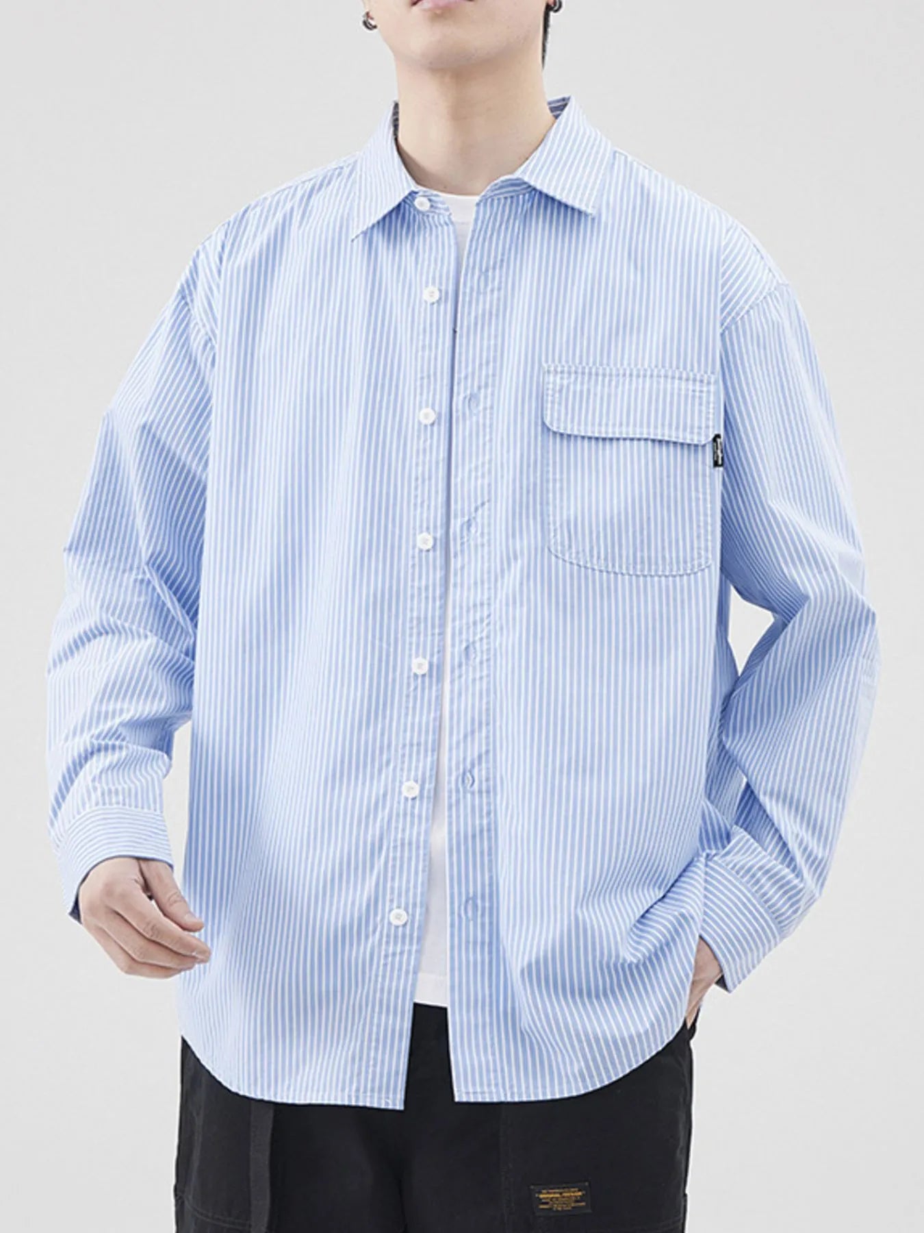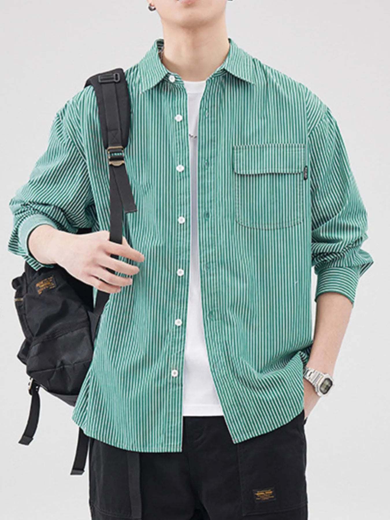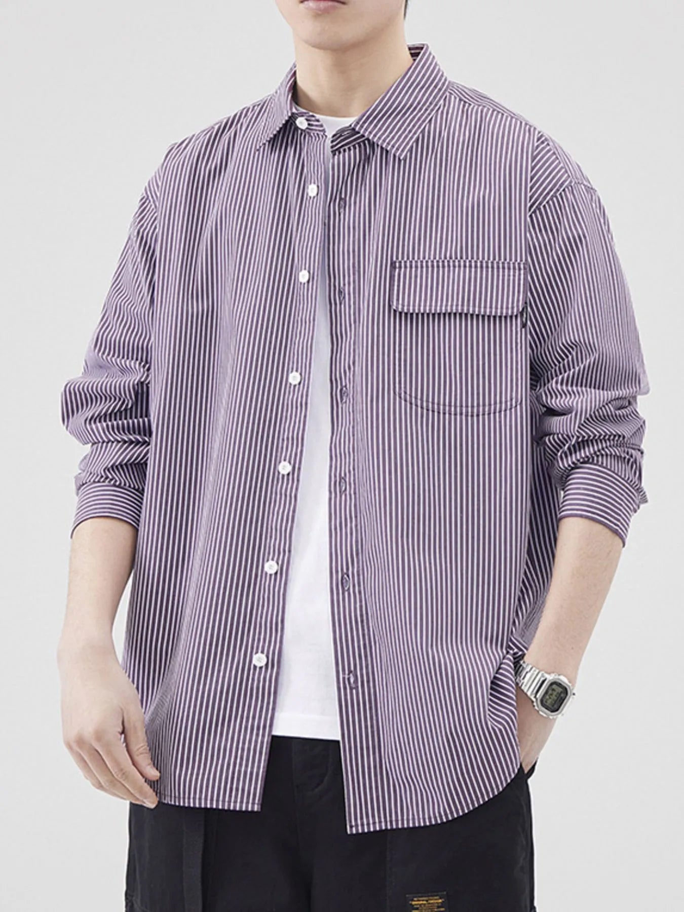 Men's Striped Button Up Long Sleeve Shirt - 95%cotton
