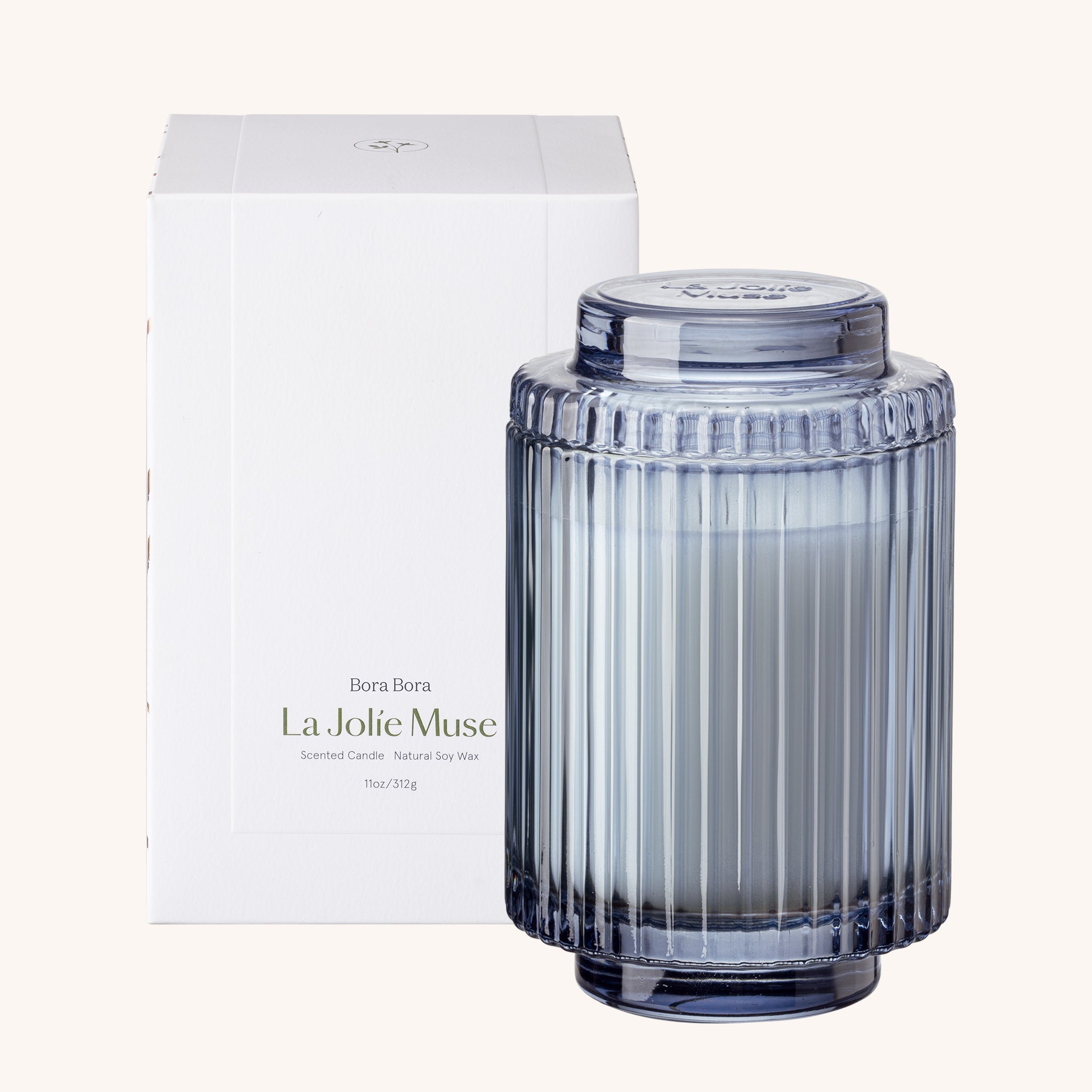 Escape to a moment of calm with the Amélie Bora Bora Candle. Bright ozonic notes, warm vanilla, and exotic tiare blend beautifully with sandalwood and musk.This fresh aquatic fragrance fills your home with calm and refreshing elegance.