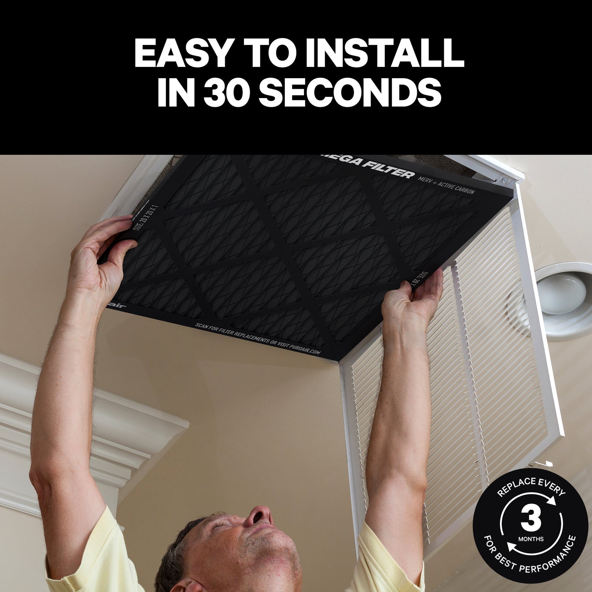 Say goodbye to allergies and hello to clean air with the revolutionary PuroAir HVAC Mega Air Filter! Our high-performance carbon-activated filter is the ultimate solution for improving air quality in both residential and commercial HVAC systems. By harnessing the power of activated carbon, these MERV 13 filters reduce a wide range of pollutants that traditional fiberglass HVAC filters can't capture, including allergens, harmful gases, odors, volatile organic compounds (VOCs), and other airborne particles.* The cutting-edge technology behind carbon filtration ensures a cleaner, fresher, and healthier indoor environment, making it the perfect choice for any space where air quality matters.