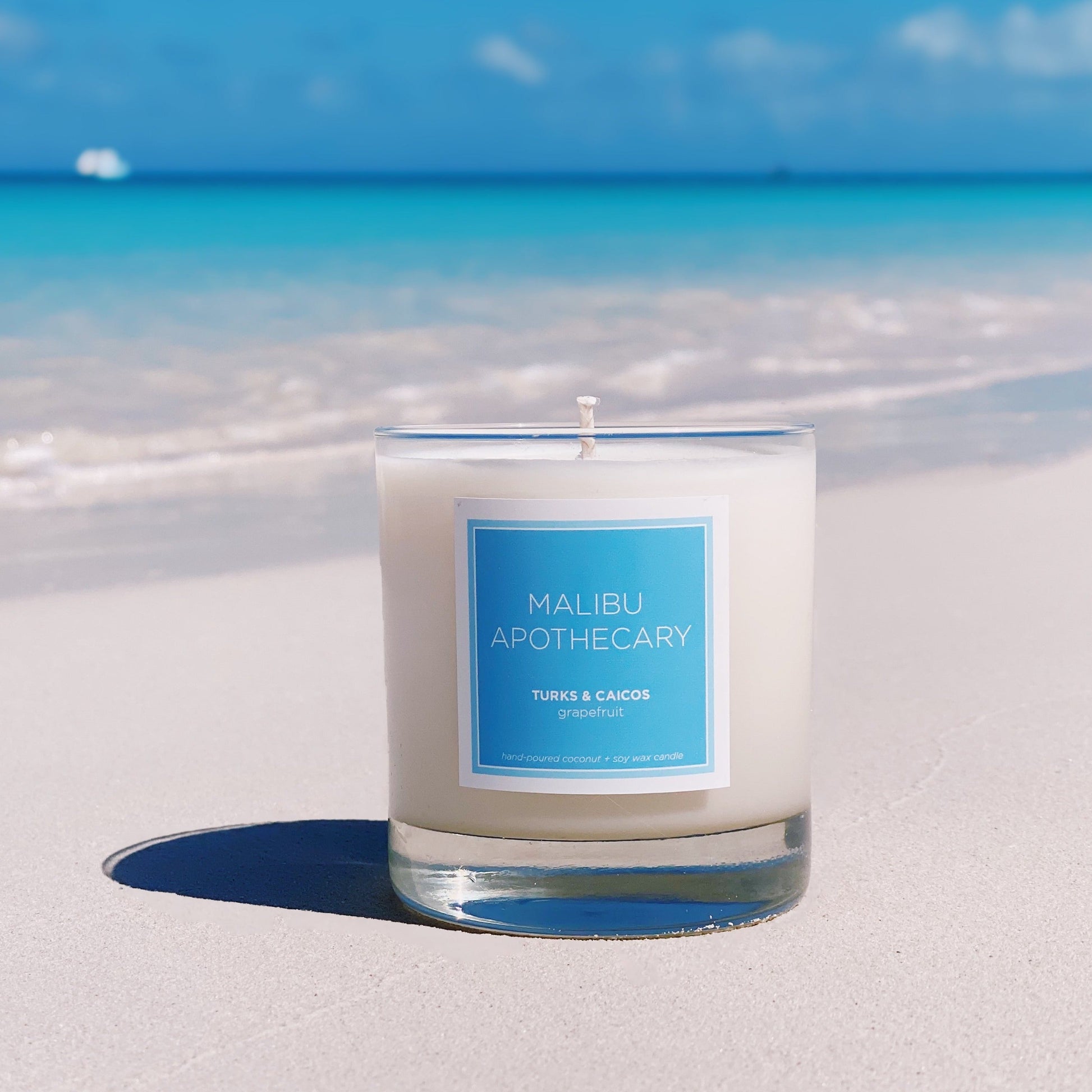 8.5oz Candle | Clear Gloss Candle with Blue Accent Label | Clear Vessel | Coconut + Soy Wax | Vacation inspired Fragrances | Free U.S. Shipping