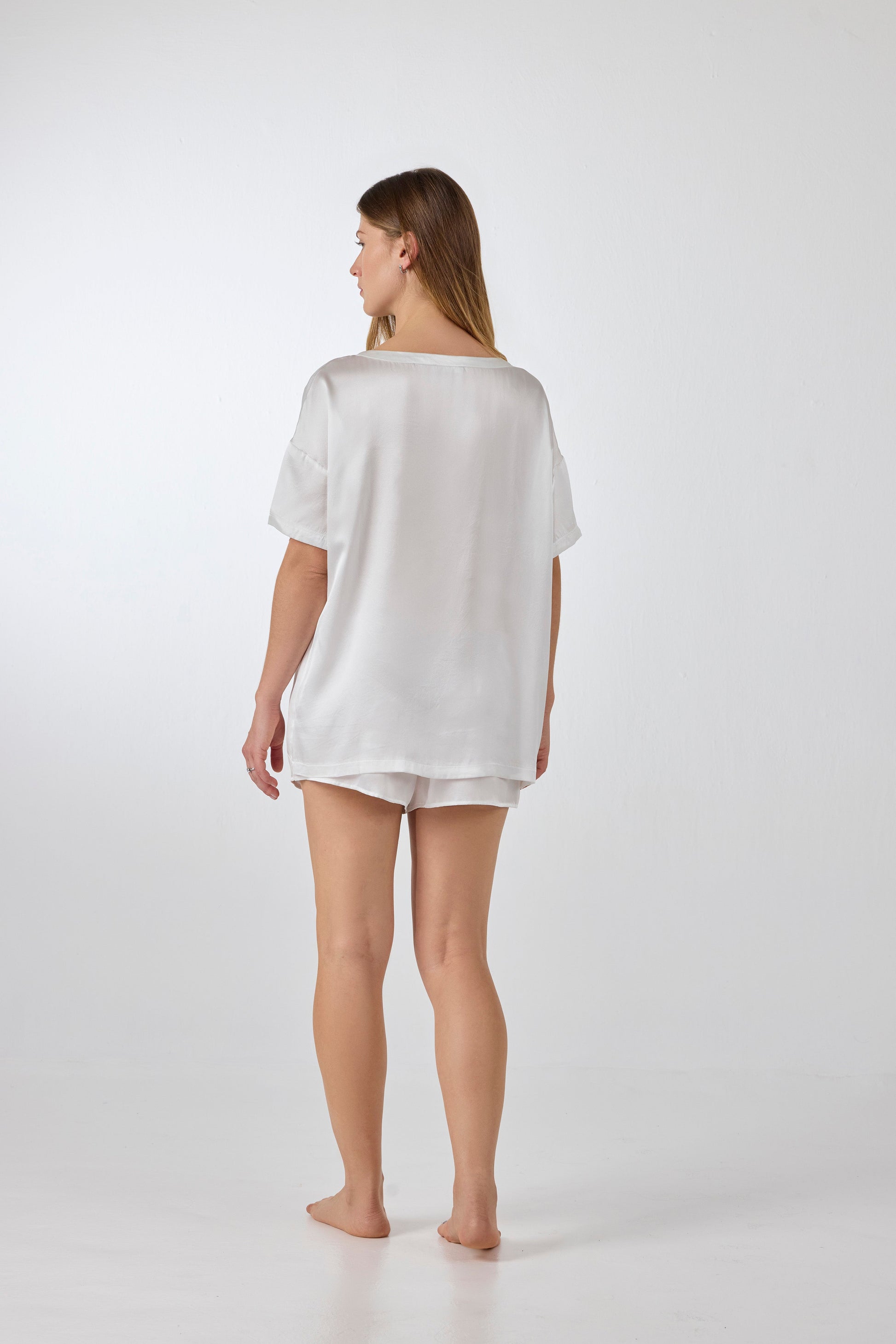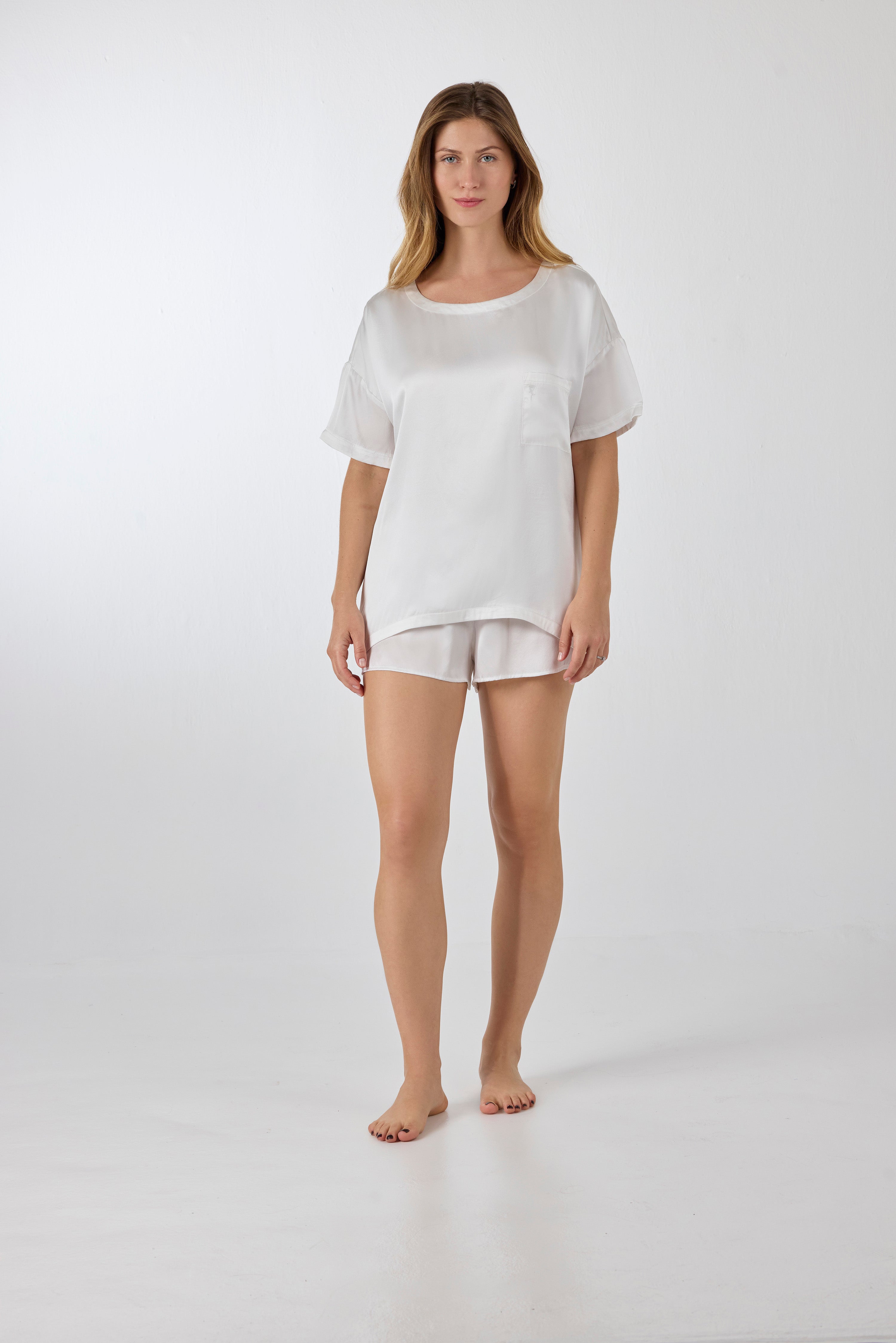 Relaxed yet refined, this boyfriend tee and shorts set reimagines the classic borrowed look. This set includes an oversized tee paired with shorts that feature subtle side slits and a comfortably stretchy waistband.