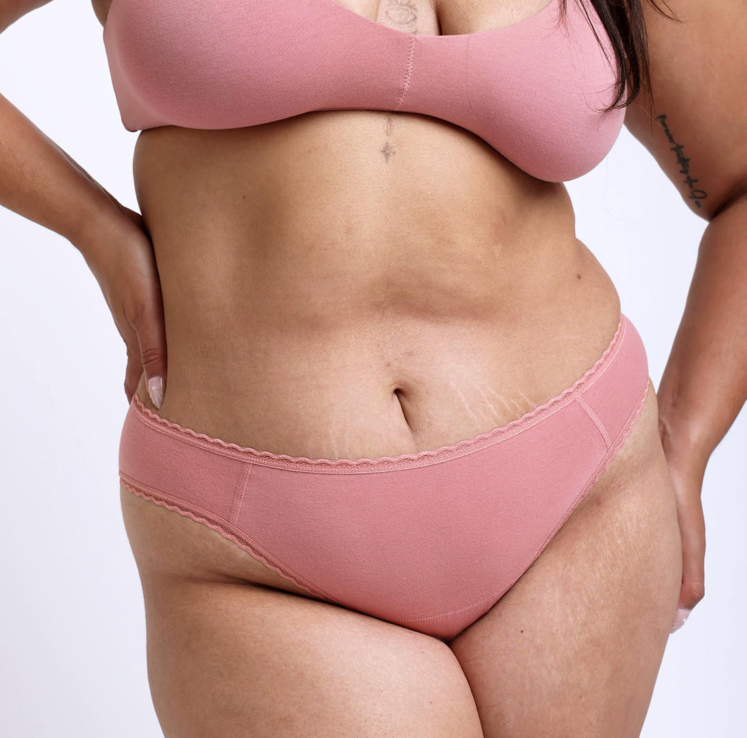 The classic shape we all know, with way more to love - finally. Our mid-rise brief is designed with a cheeky bum and a high leg cut to sit right on your high hip. Made with our soft GOTS-certified organic cotton fabric, detailed with lace trim, and featuring our signature sewn-down longer gusset.