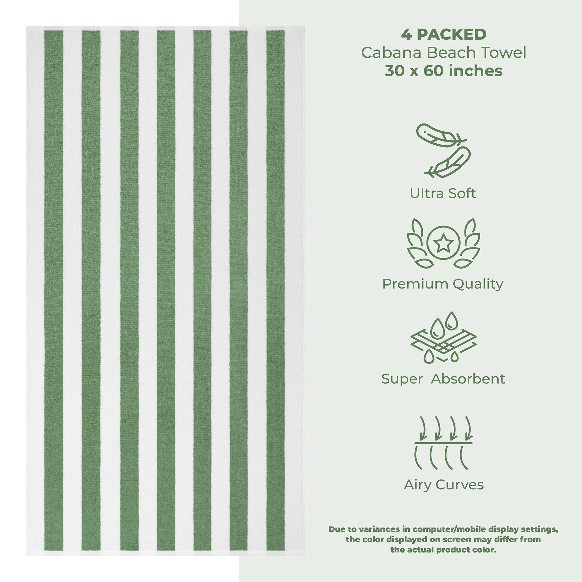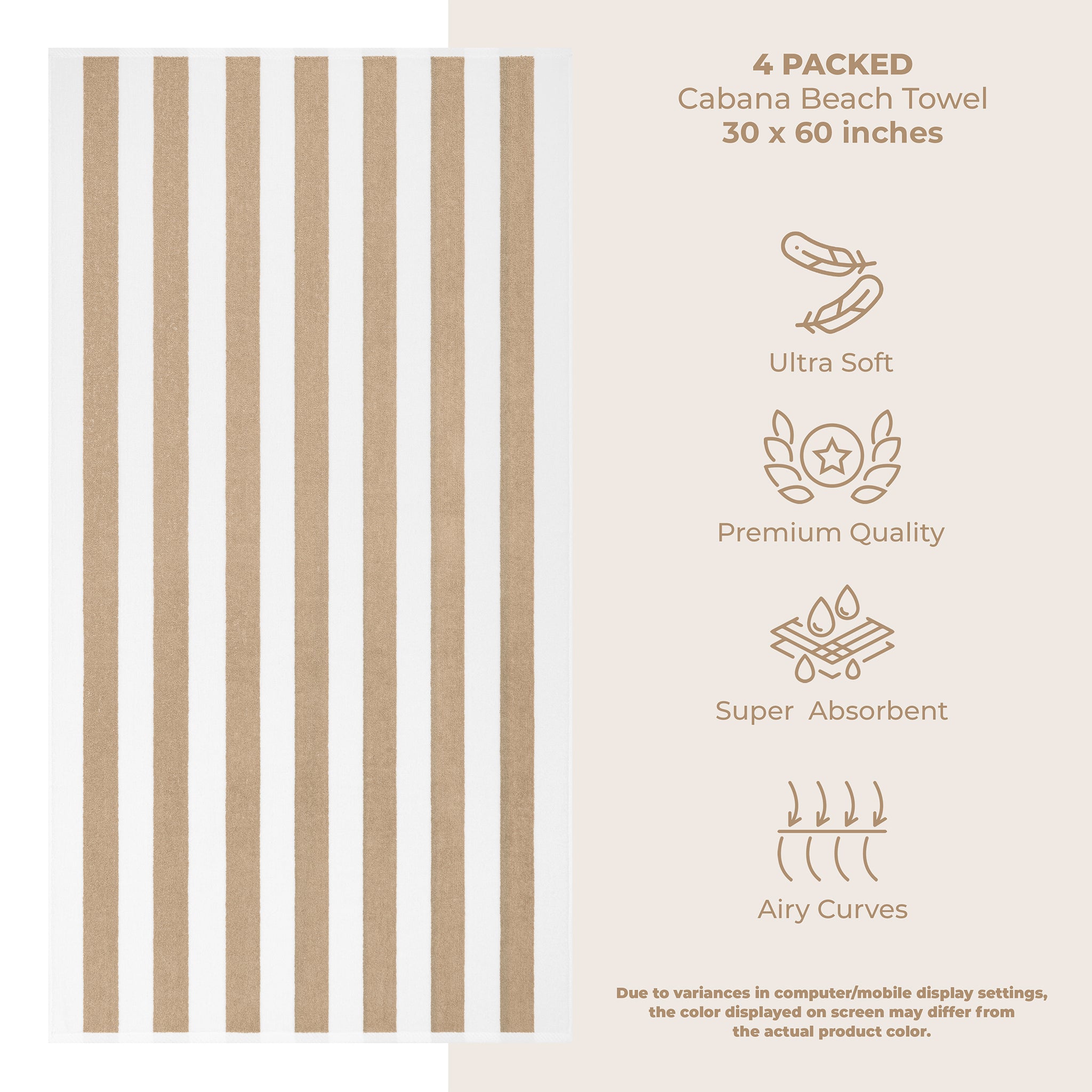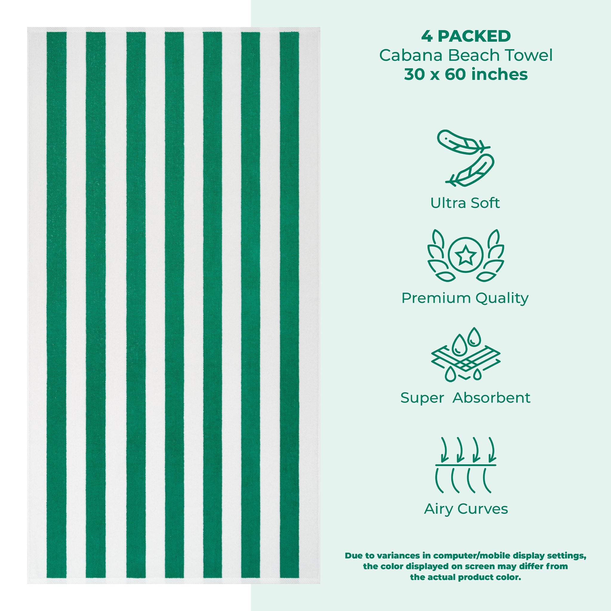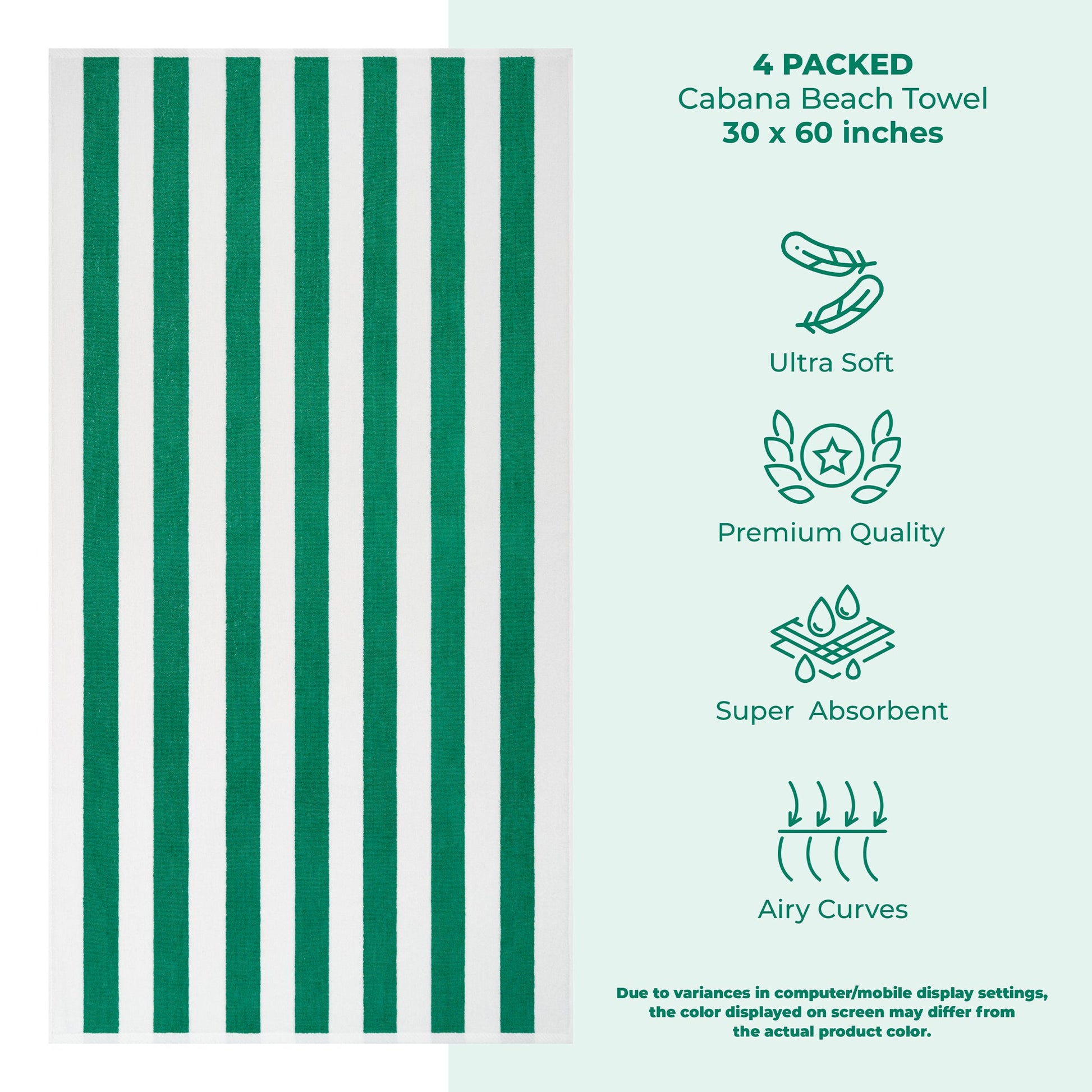 4 Pack Cabana Striped Oversized Beach Towel 30x60 Inch, Premium Cotton, Soft Absorbent, Sand Free, Swim Towels