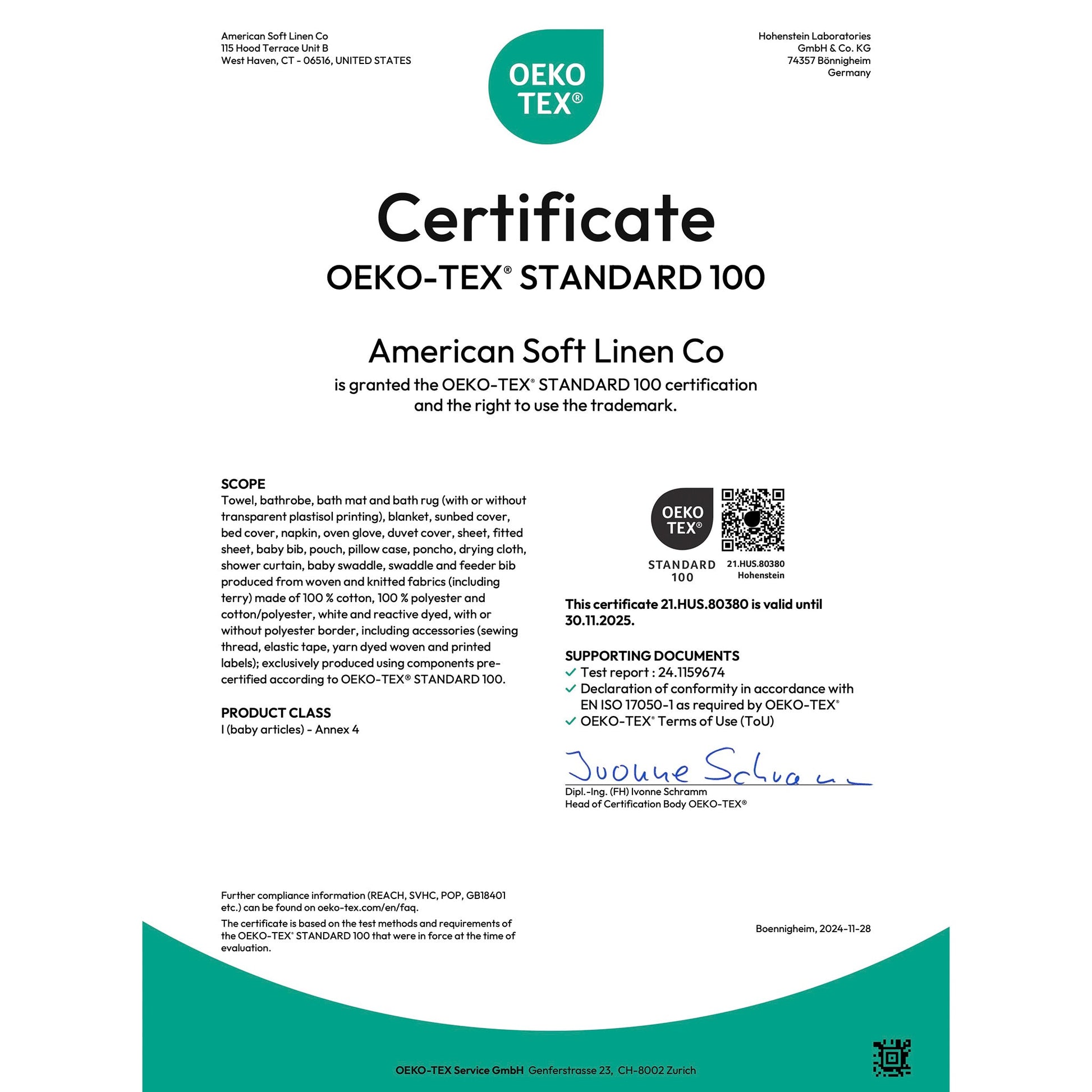 OEKO-TEX® STANDARD 100 keeps you and your family safe by testing [each component of] a certified product against a list of over 1,000 harmful substances. Certificate #21.HUS.80380 by Hohenstein.