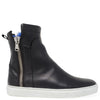 Discover the Black Leather Double Zip Shearling Sneaker, crafted by Madison Maison. Stay cozy and stylish this winter with its luxurious shearling lining. This hi-top sneaker features a 6.5 inch shaft and a sophisticated black design, made with a leather and Shearling lining, and rubber sole. Perfect for any fashionable individual, this Italian-made shoe is a versatile addition to your wardrobe.