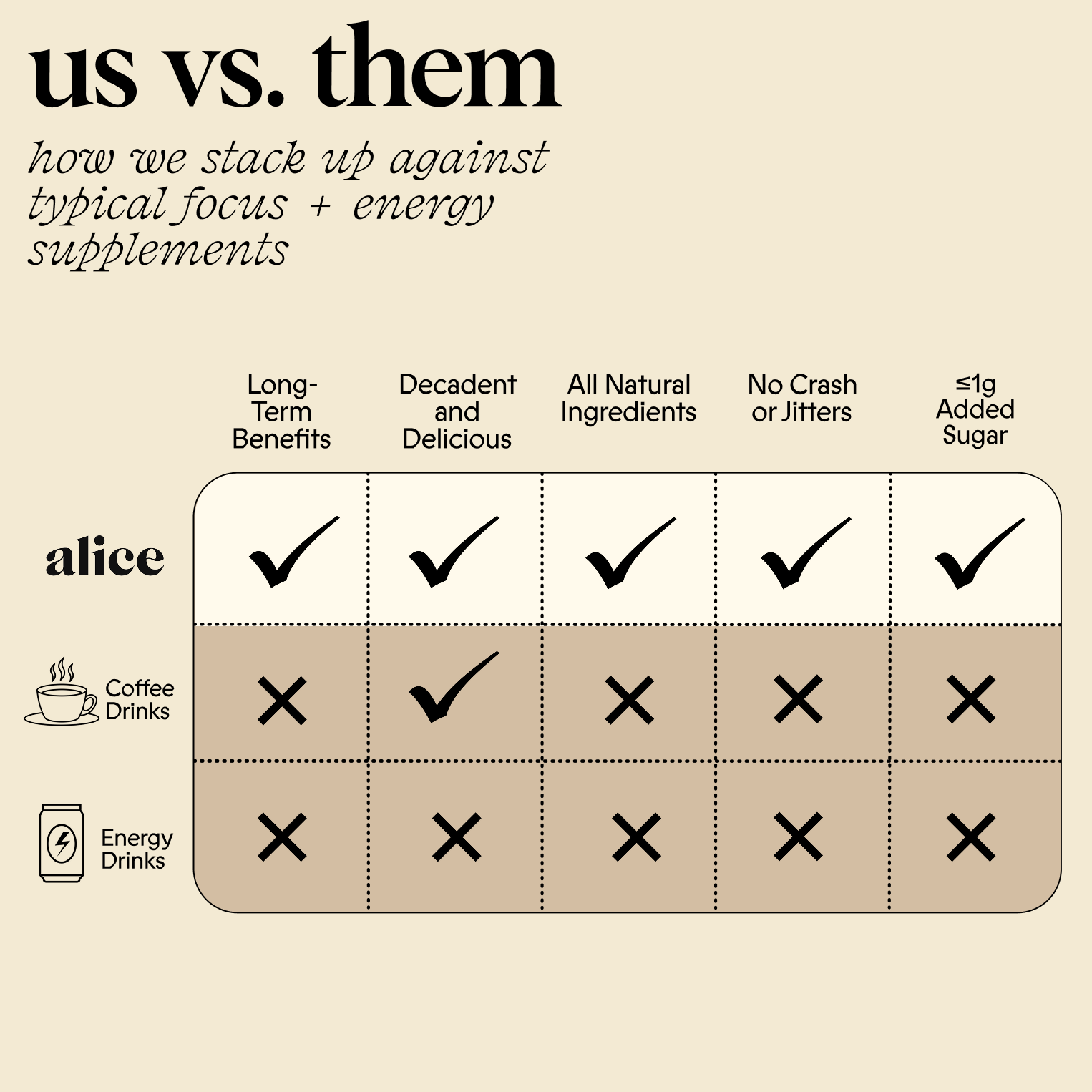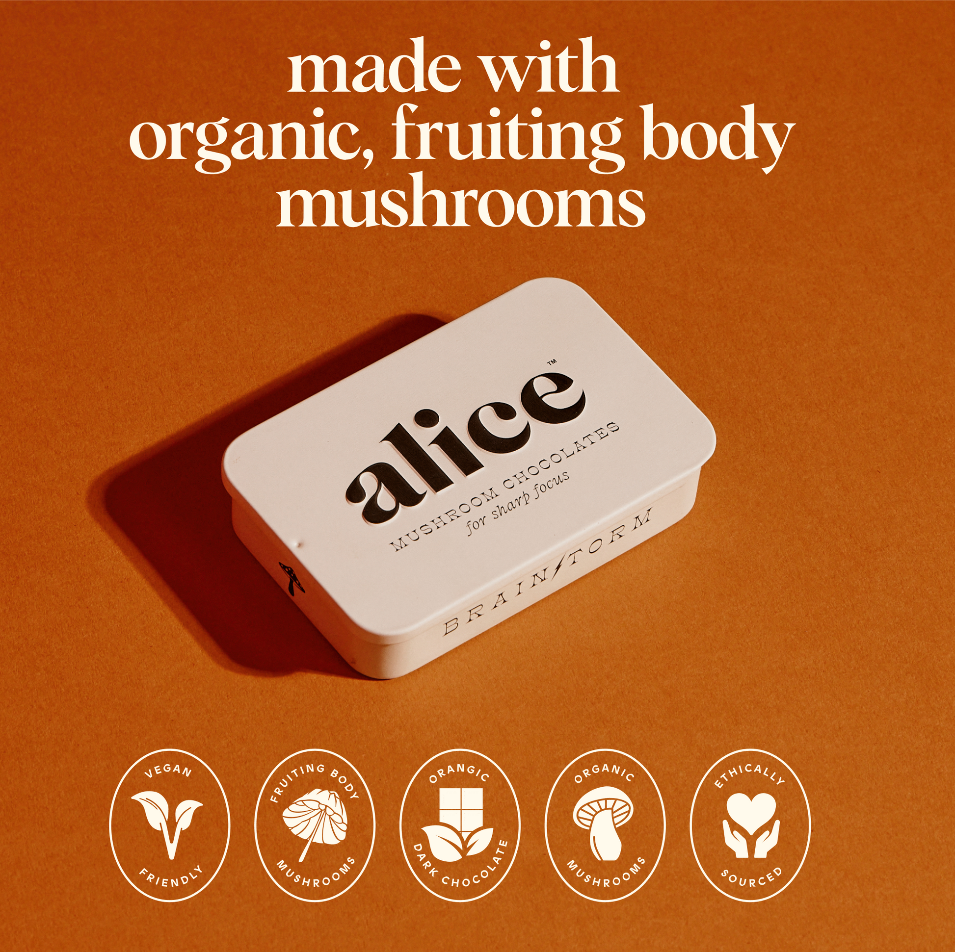 bring things back into focus with alice. indulge in functional mushroom chocolate brain supplements with potent nootropics that you can feel.