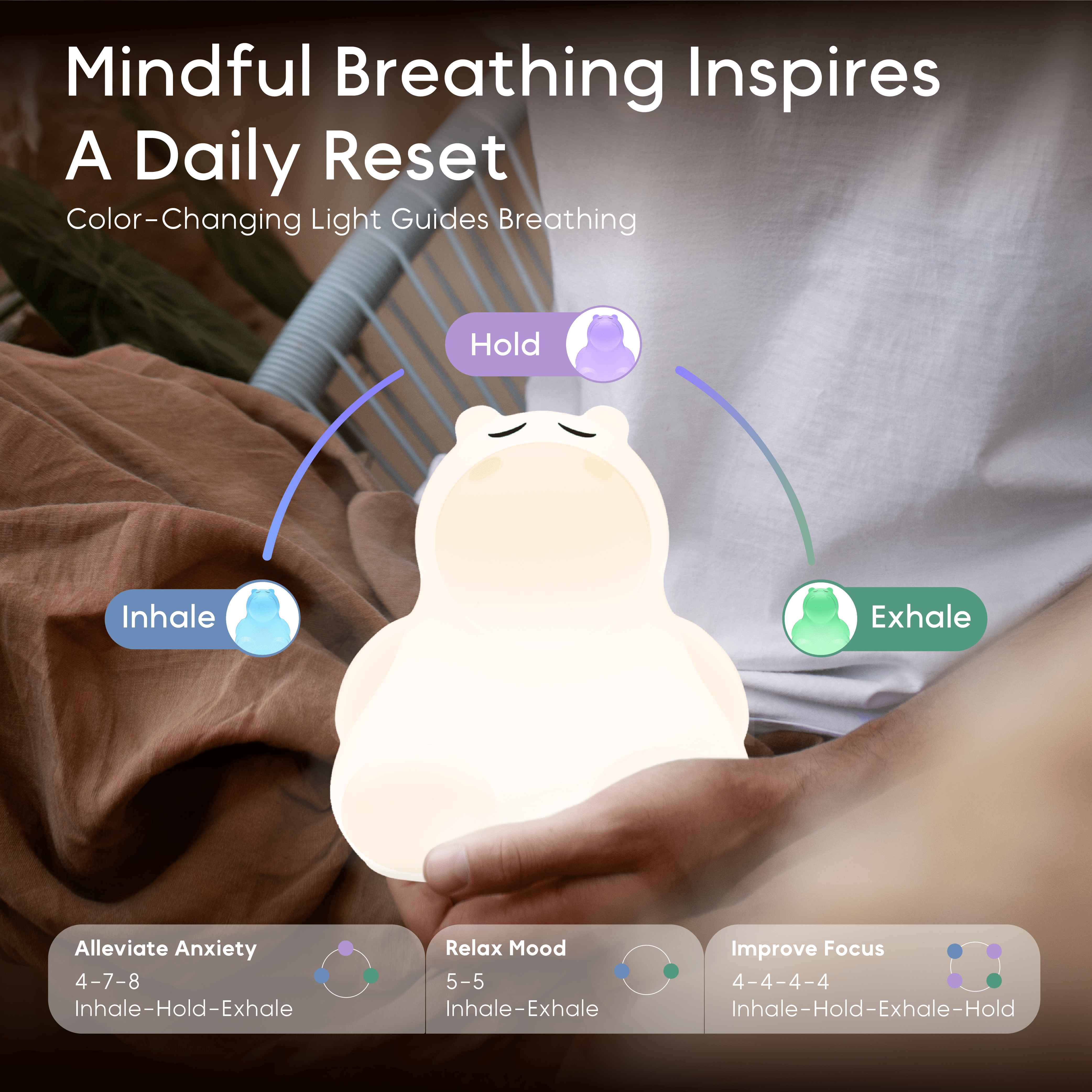 • Easy to Use - Simplify your relaxation journey with our one-button operation. Easily switch between different breathing exercises with a single press, or tap to change the ambient light color to match your mood. For added convenience, the device features an auto-shutdown function, giving you peace of mind as you focus on your breathing and well-being, making it a must-have meditation accessories