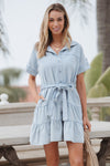 Button Down Tiered Mini Dress - Light Denim - FINAL SALE