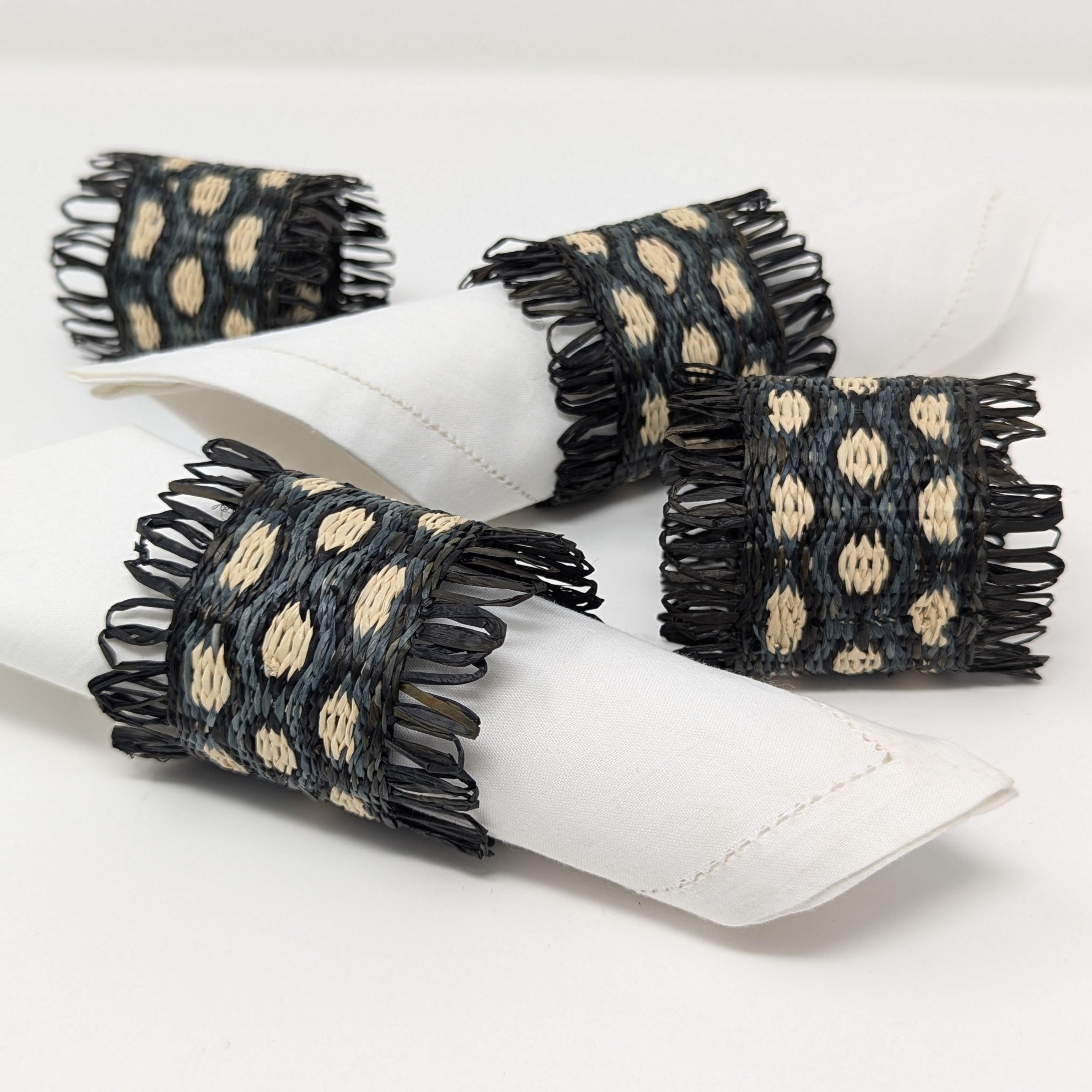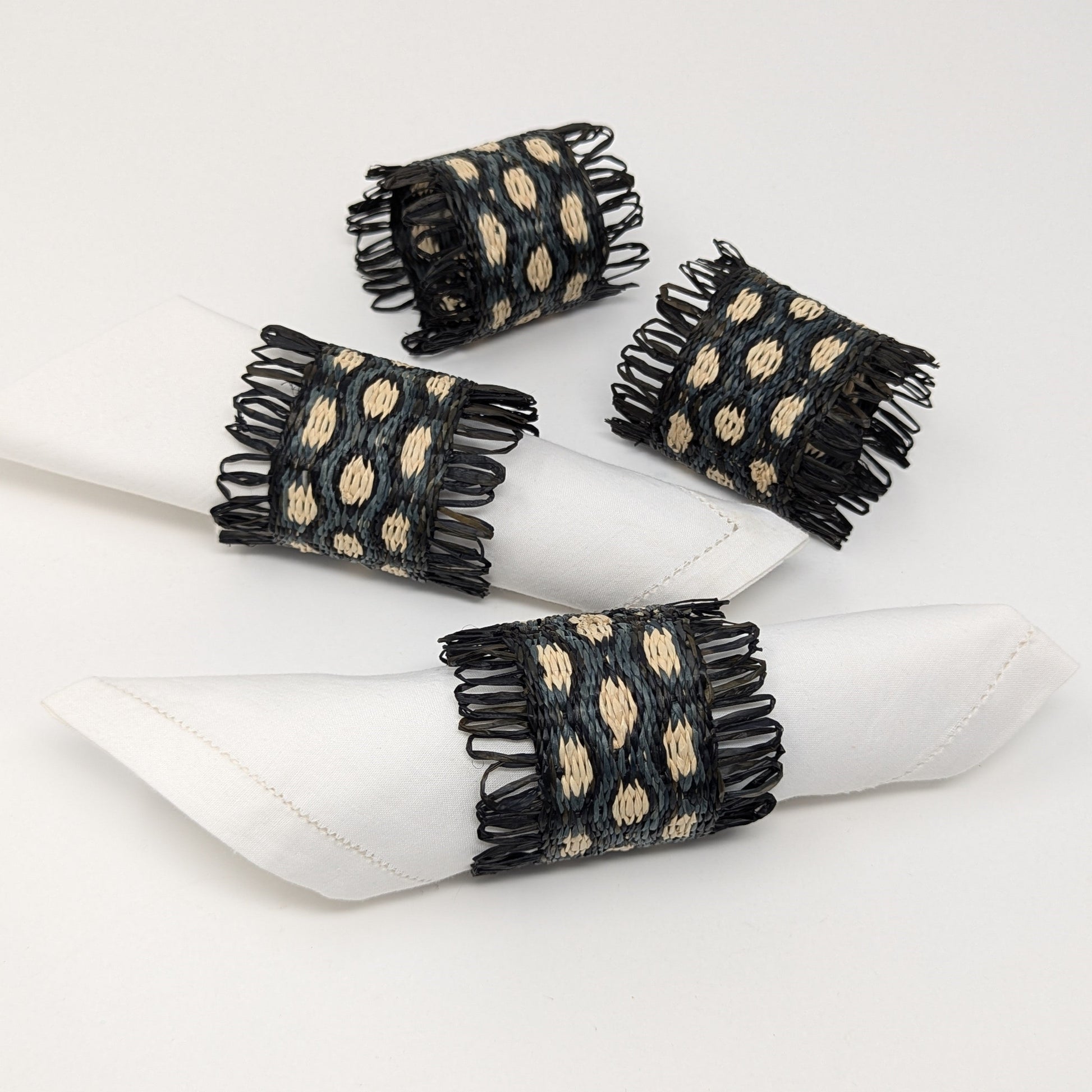 Cardwoven Raffia Napkin Ring (Set of 4) - Black