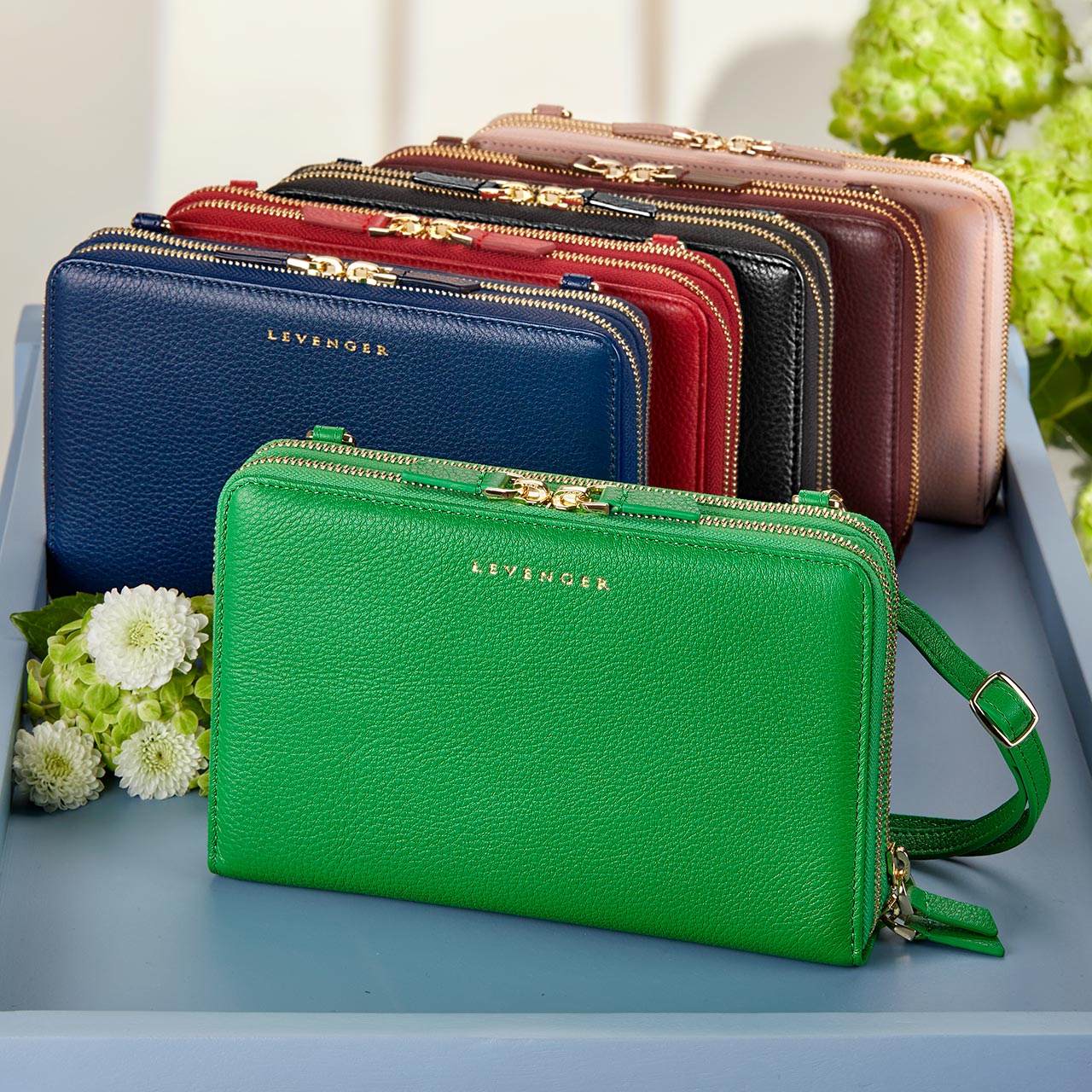 An accommodating leather travel wallet and clutch with supreme functionality. This clever clutch and travel wallet is lined in RFID-blocking lining to shield your information from electronic scanning. It has two main compartments, one for your ID, cards, currency and smartphone (iPhone® XS Max fits); the other has a slip pocket, a zip pocket and two storage compartments. The strap allows you to wear it cross-body when you want to go hands-free. Here's what our Co-Founder Lori Leveen has to say about this product: “This bag is so well constructed and made of such soft leather that I just love holding it. It’s perfect for my phone, credit cards, glasses and lipsticks—all the essentials.”