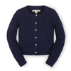 Our adorable classic cable cardigan in soft organic cotton is a sophisticated wardrobe staple for your little lady. This is the piece that layers perfectly with anything from a dressy dress, to a school uniform, to t-shirt and jeans! Features gold shank buttons at the center front and two sweet little pockets.