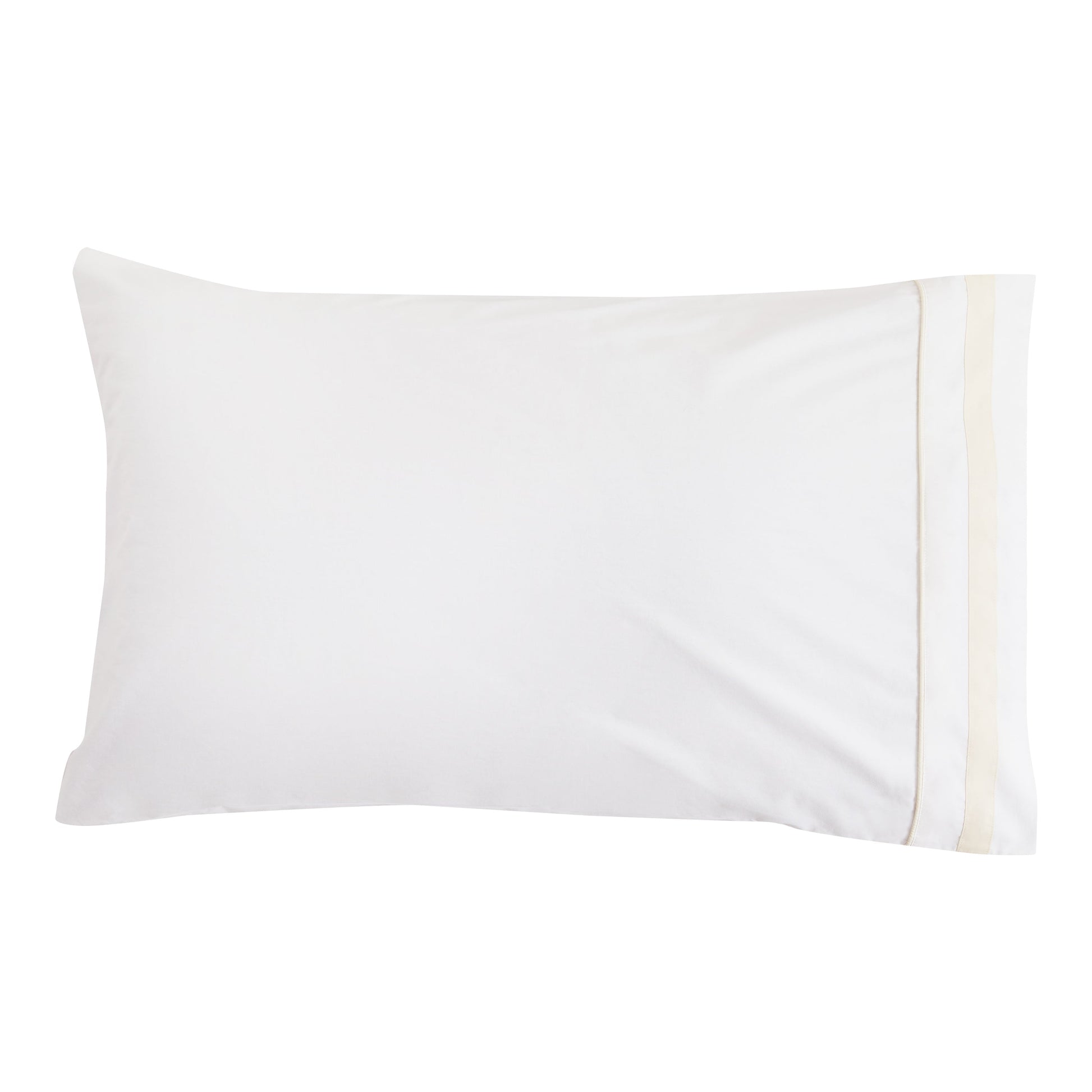 We weave our Percale bedding by laying one warp thread over one weft thread in a one-to-one ratio. This produces a fabric with a matte finish that is soft yet durable, crisp and cool to the touch. We added a tailored band and piping to the edge for sophisticated luxury and style.