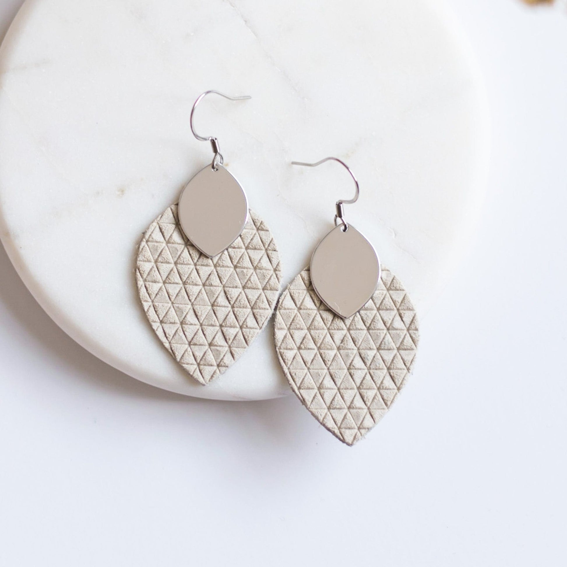 Effortlessly stylish, these leather statement earrings are a stunning addition to any outfit. The neutral coloring of the Cotton Cora Earrings make them a versatile addition to any wardrobe. Featuring textured leather in a creamy ivory hue, these hand crafted lightweight earrings are a classic piece of ethically made jewelry.