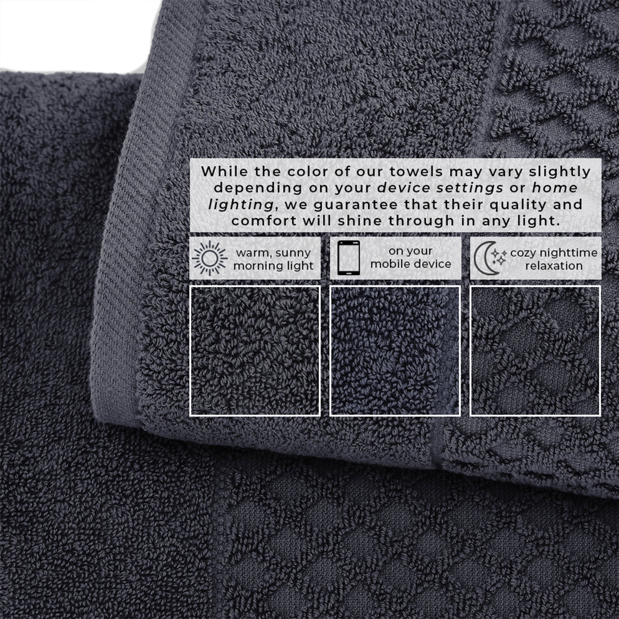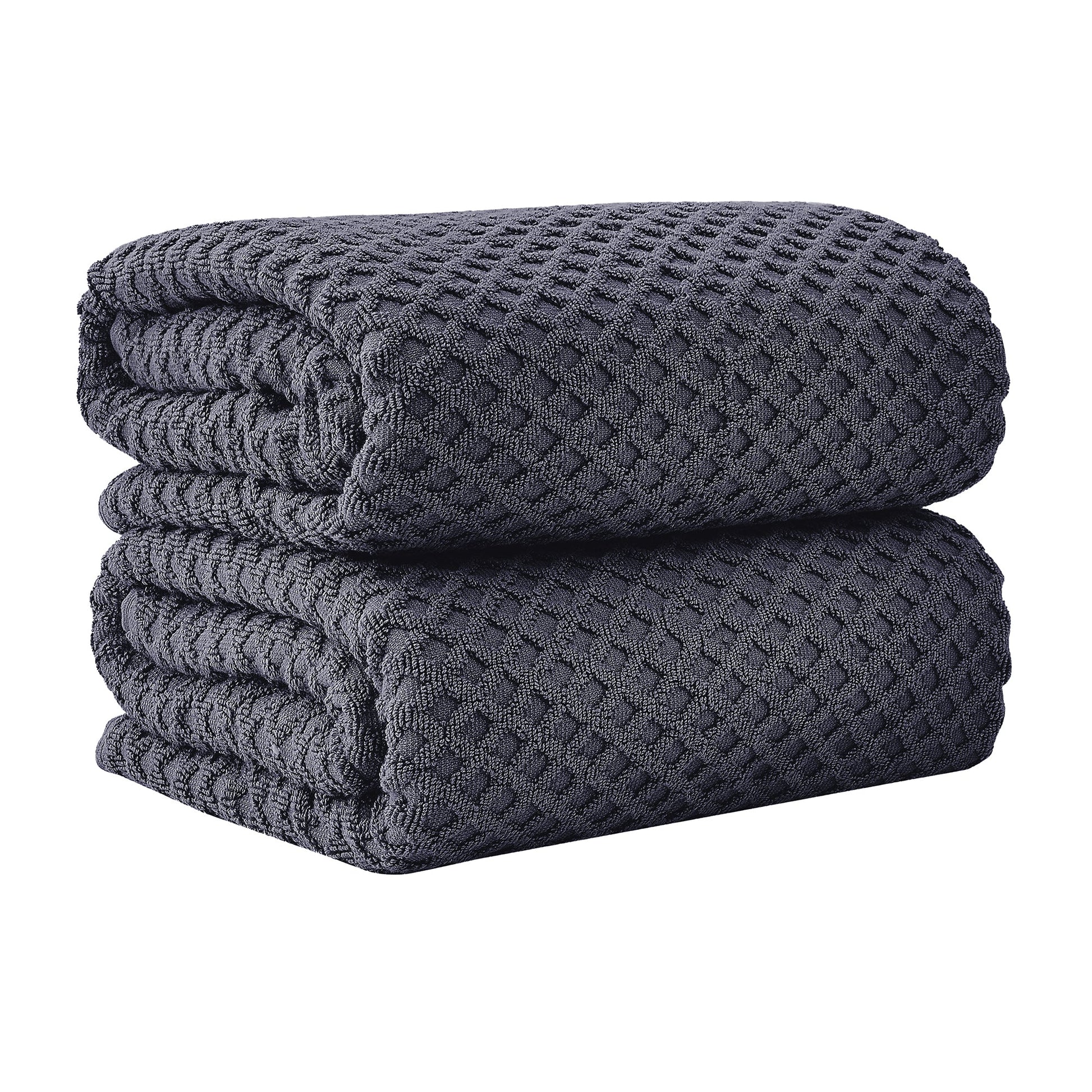 Renew your bathroom's decorative appeal with ultra-soft, textured bath towels. These towels are made from low-twist, two-ply cotton fibers, meaning they are plush, incredibly soft and absorbent, and durable. Made to last you many washes and get softer with each use - perfect for kids and pets. The diamond waffle texture creates a unique visual interest, these bath towels are both functional and decorative. The core colors are versatile and sure to match your bathroom aesthetic with ease.