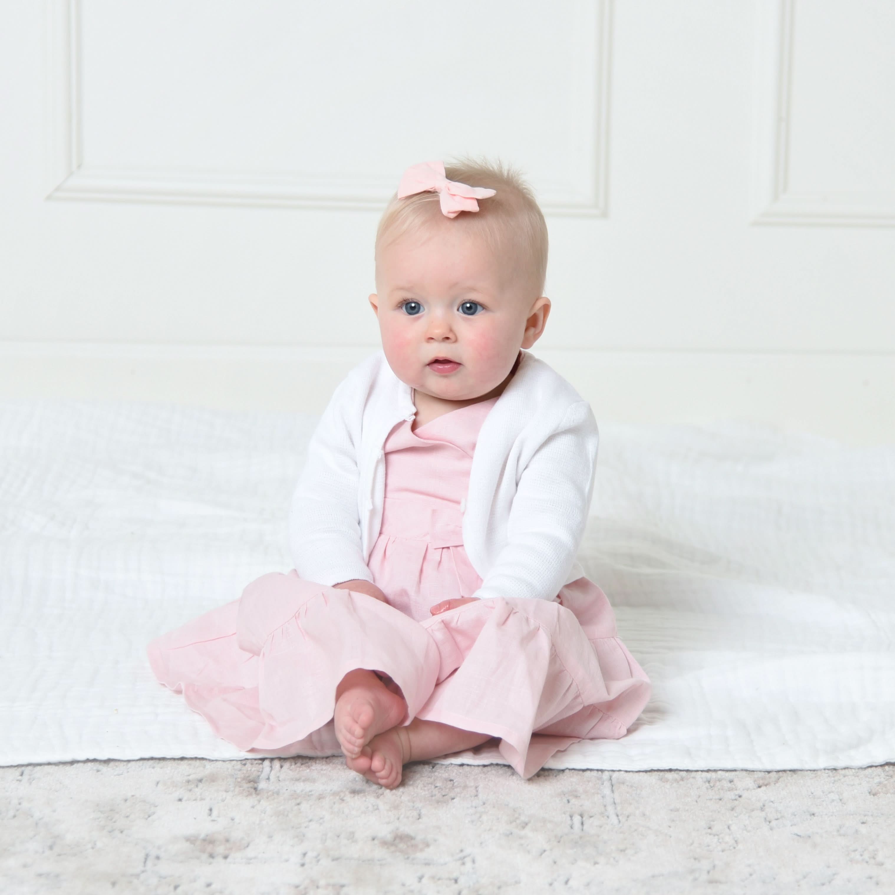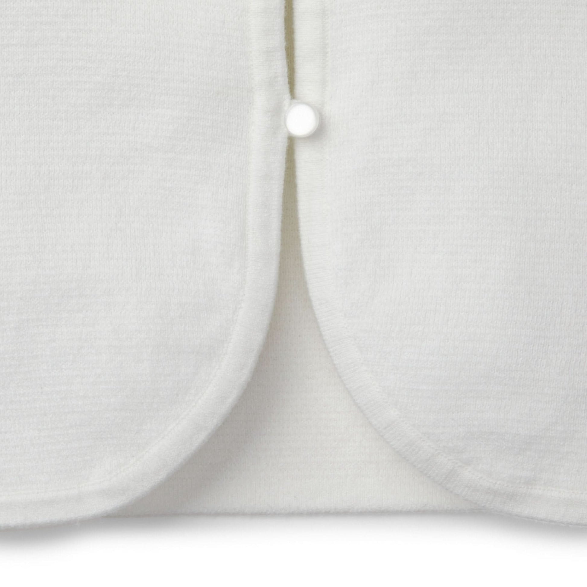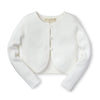 The best layer to top off all her dressy outfits. Our cropped cardigan sweater is knitted in fine gauge organic cotton with full fashioning at armholes and delicate pearlized button and loop closure at the front. Gently curved front hem gives that feminine touch.