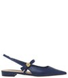 Description: The Madison Maison White Slingback Flat is a pointed-tie flat with an over the foot strap secured with a metal button and an elastic ankle strap.
