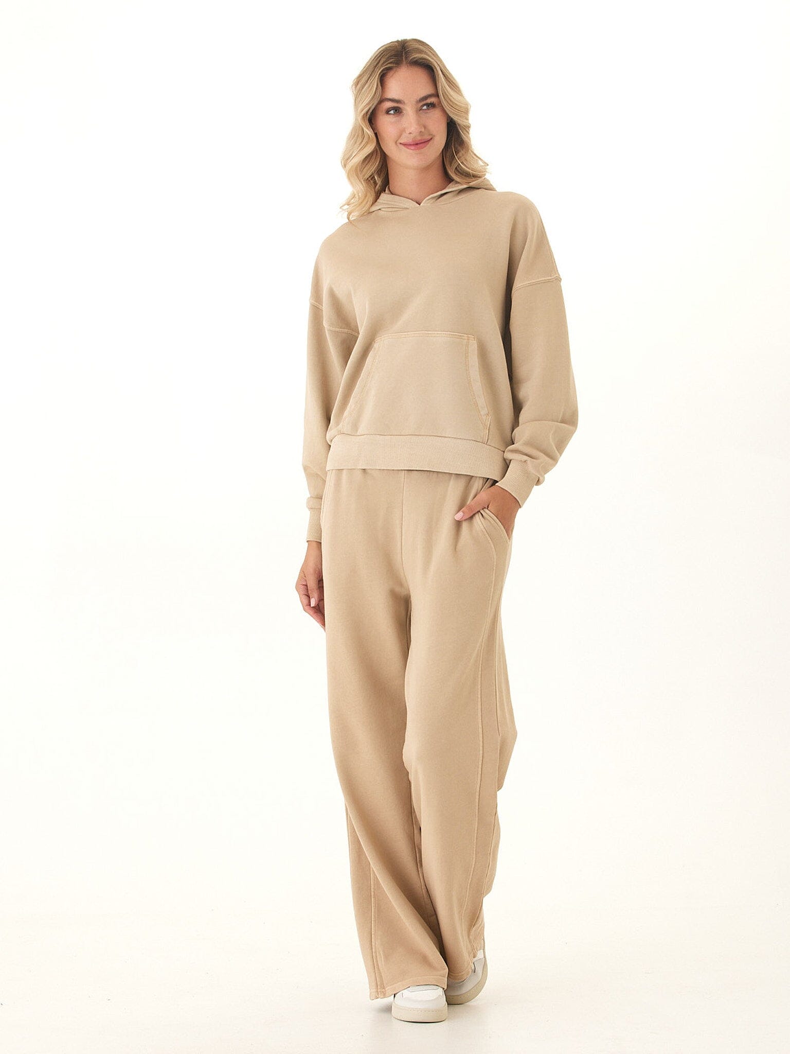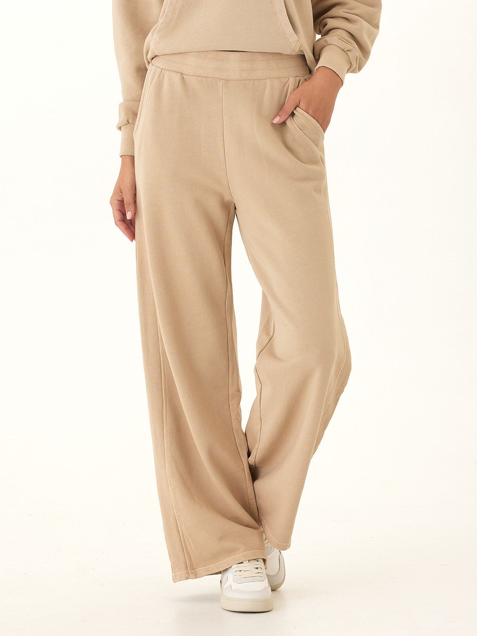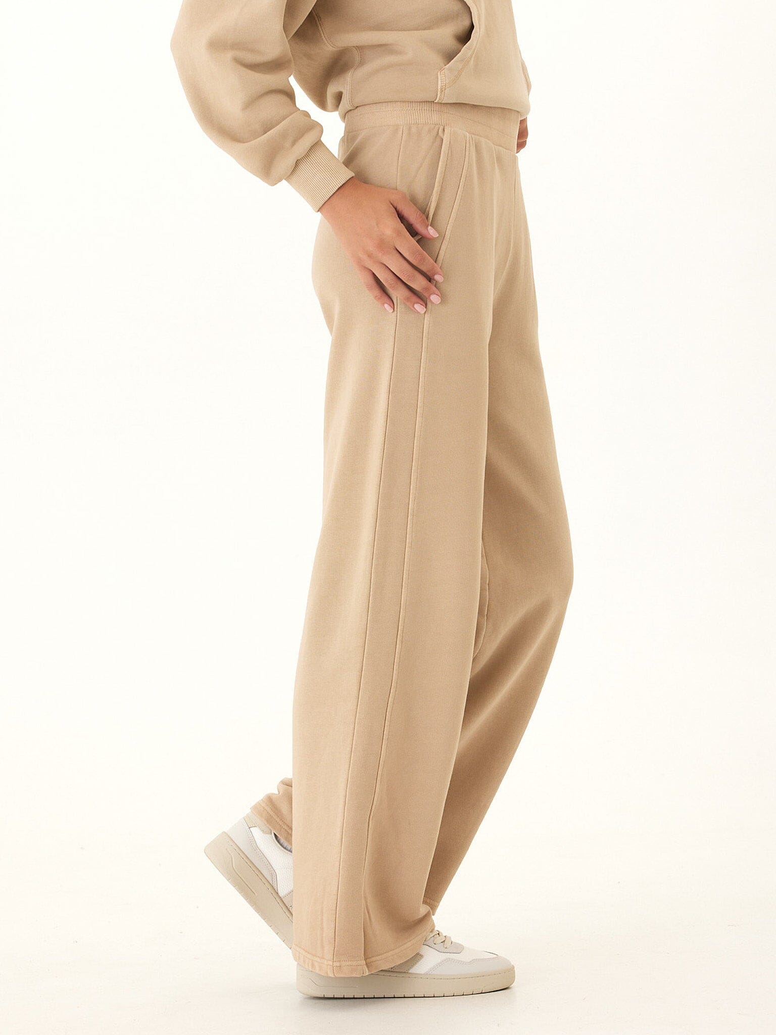 A lounge staple with an elevated edge. These wide-leg sweatpants are cut from our soft, mid-weight fleece and washed for a naturally worn-in look and feel. The relaxed fit drapes effortlessly, while the elastic waistband, side pockets, and clean seam detailing keep them both functional and flattering. The perfect balance of comfort and everyday polish.