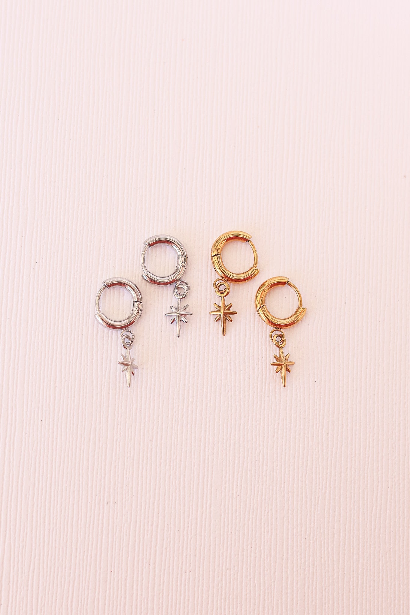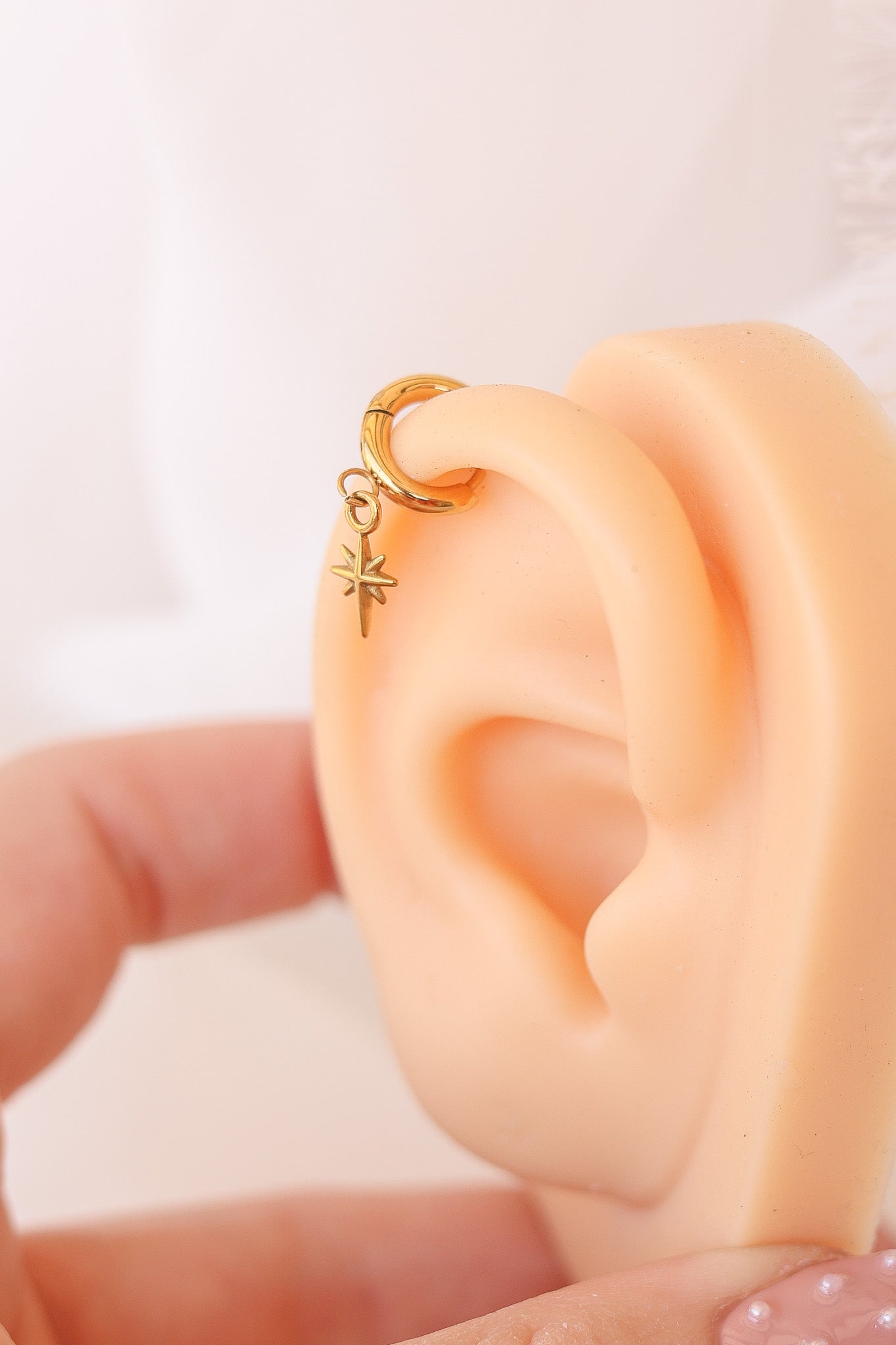 - 6mm Micro Hoop with 10mm Eight Point Star Charm
