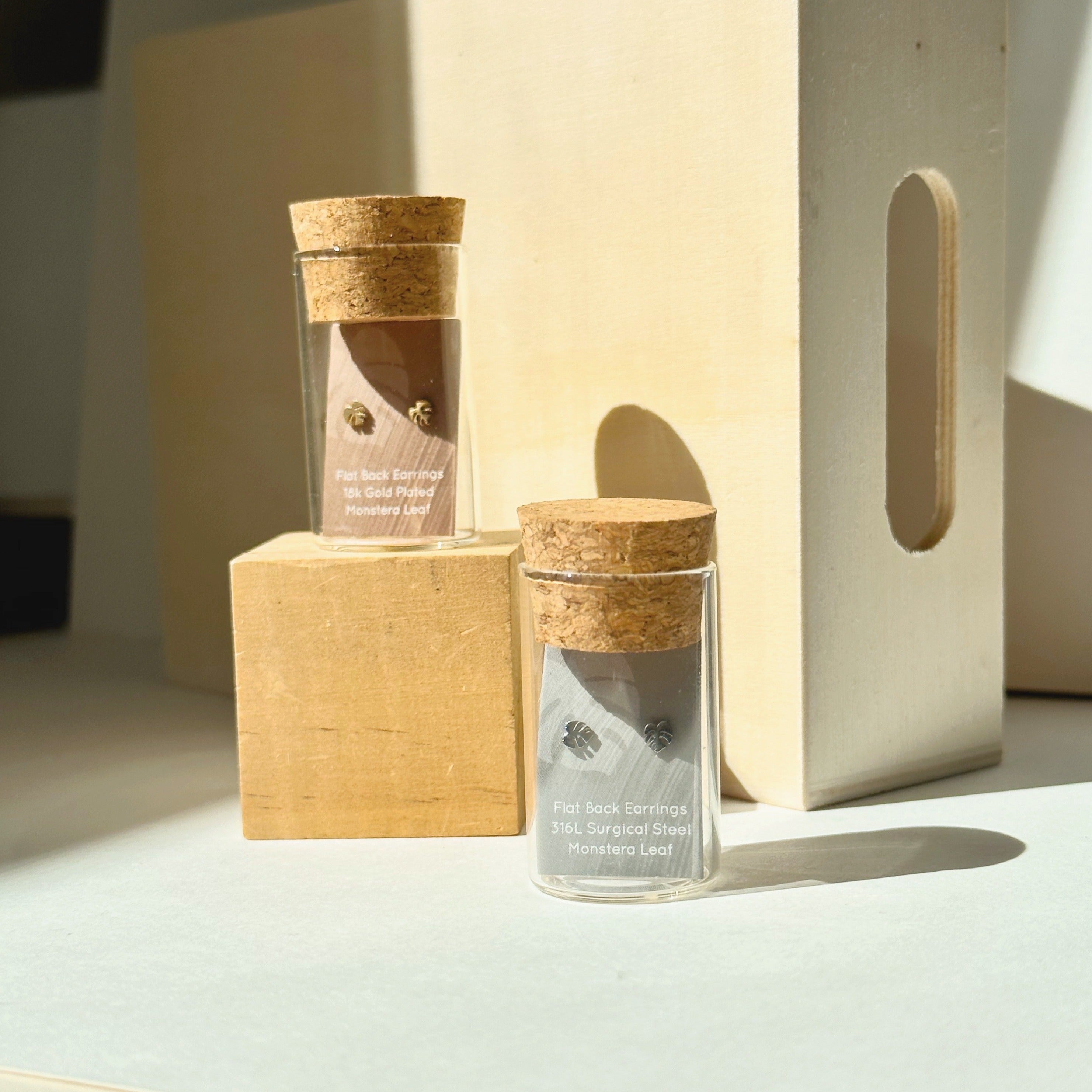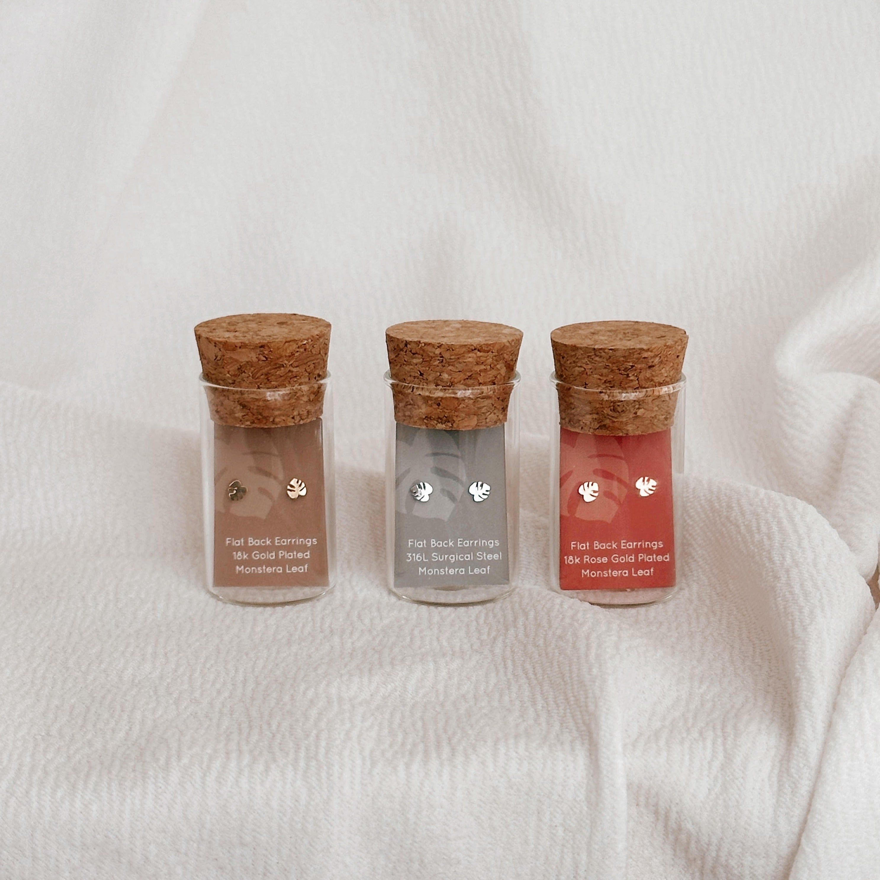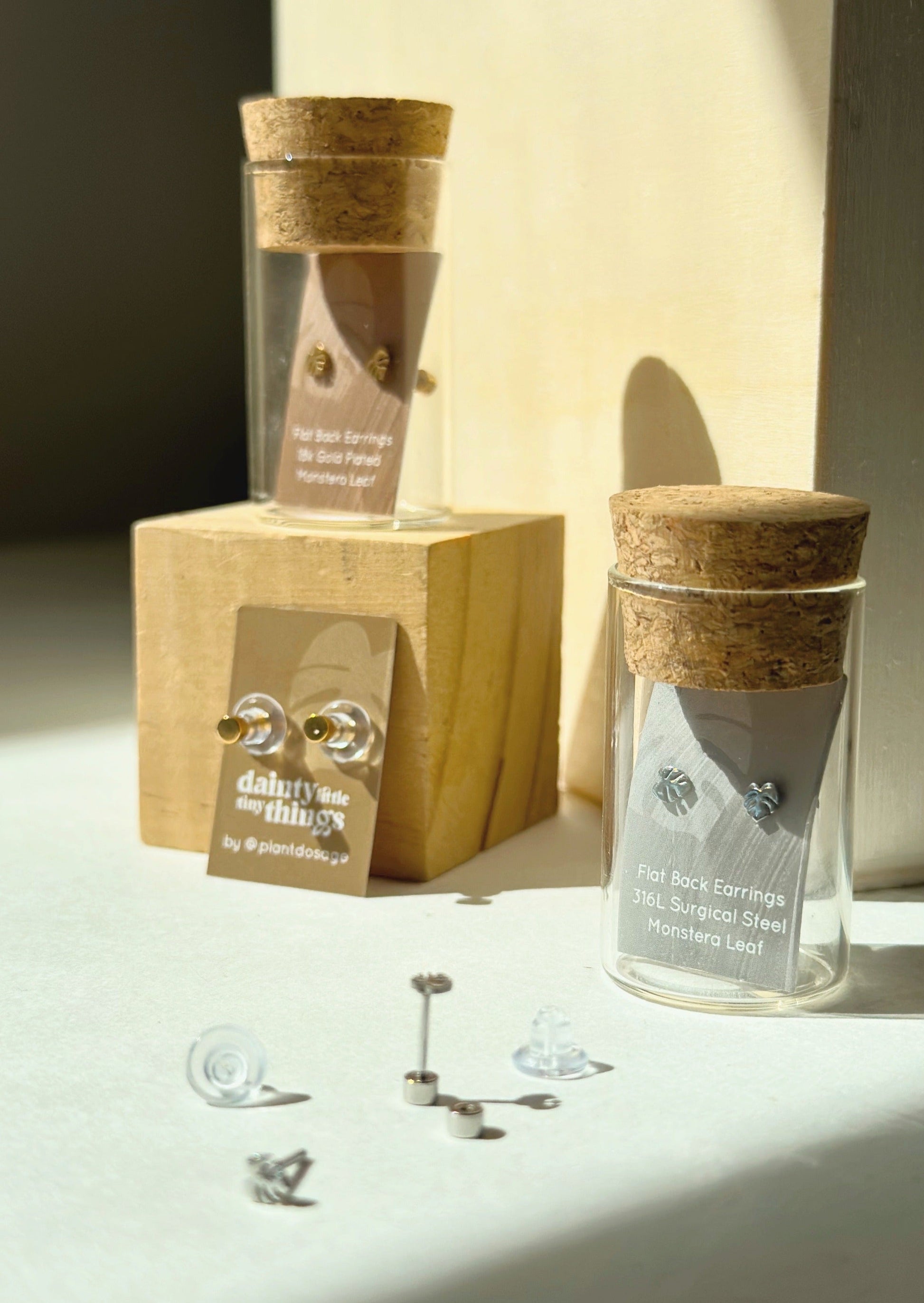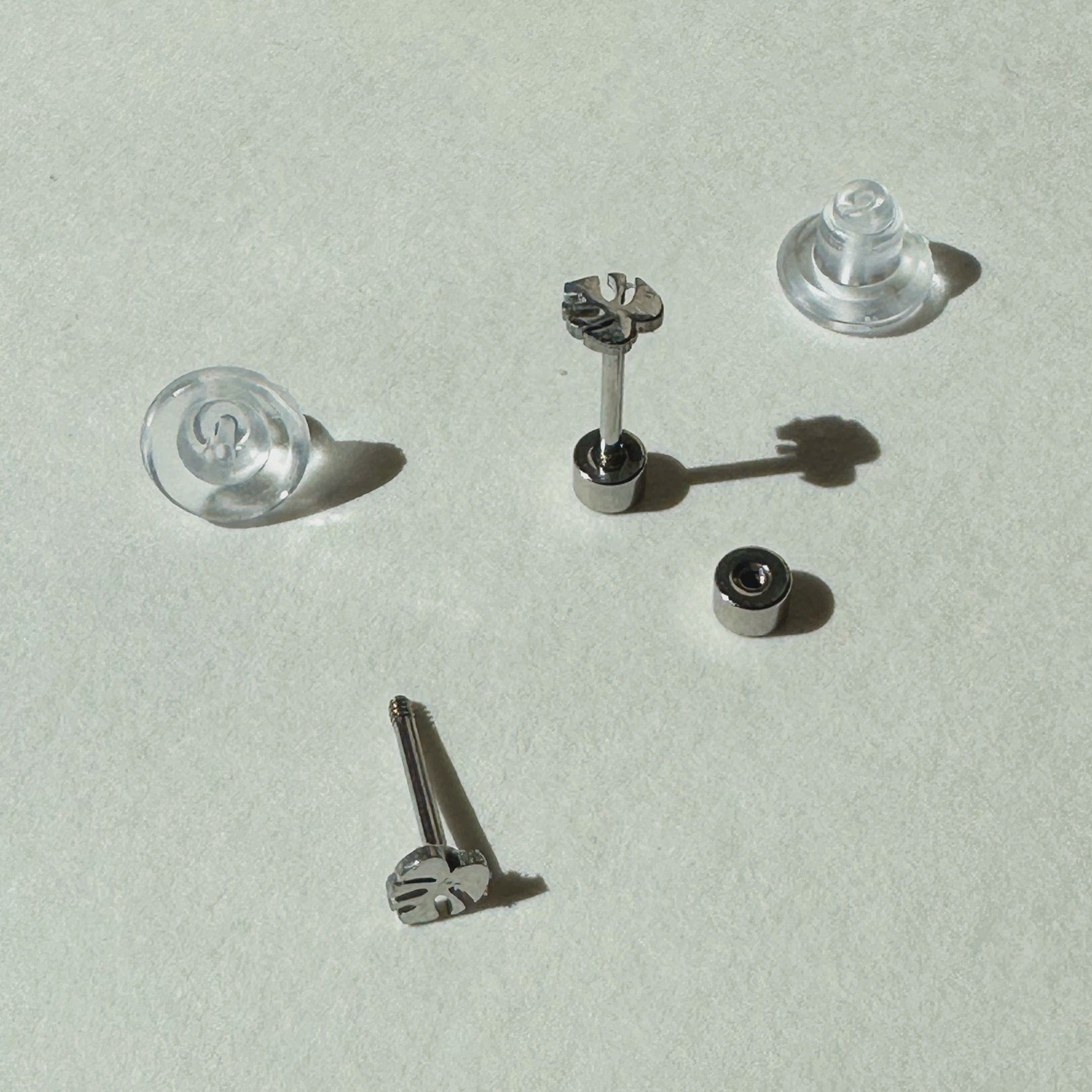 Teeniest Tiniest Monstera studs with Screw-on Flat Backs are: