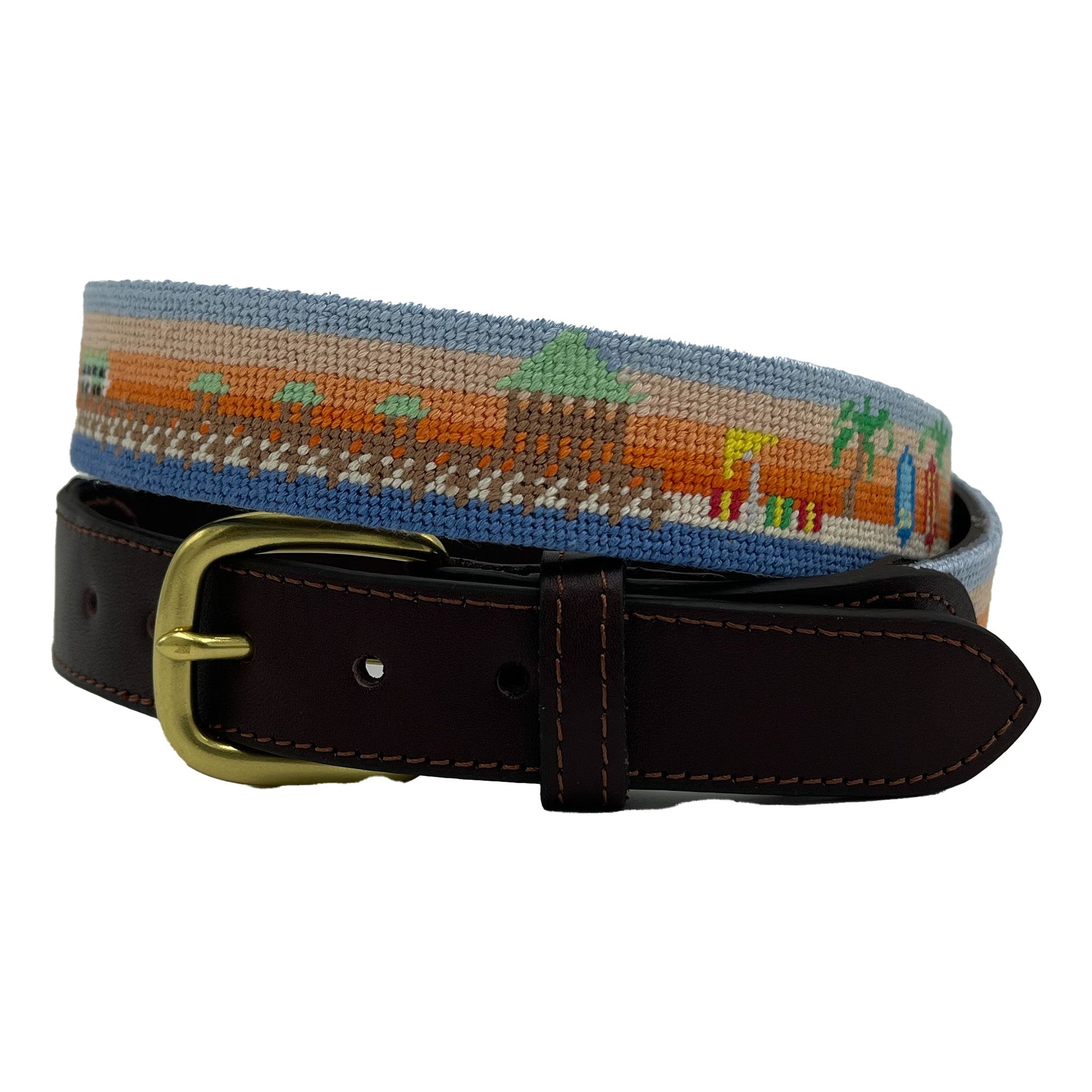 Example:  size 34 pants waist will generally fit best in a size 38 needlepoint belt.  Due to the construction of the belt, it will be a bit stiffer at first and the leather will soften with wearing.