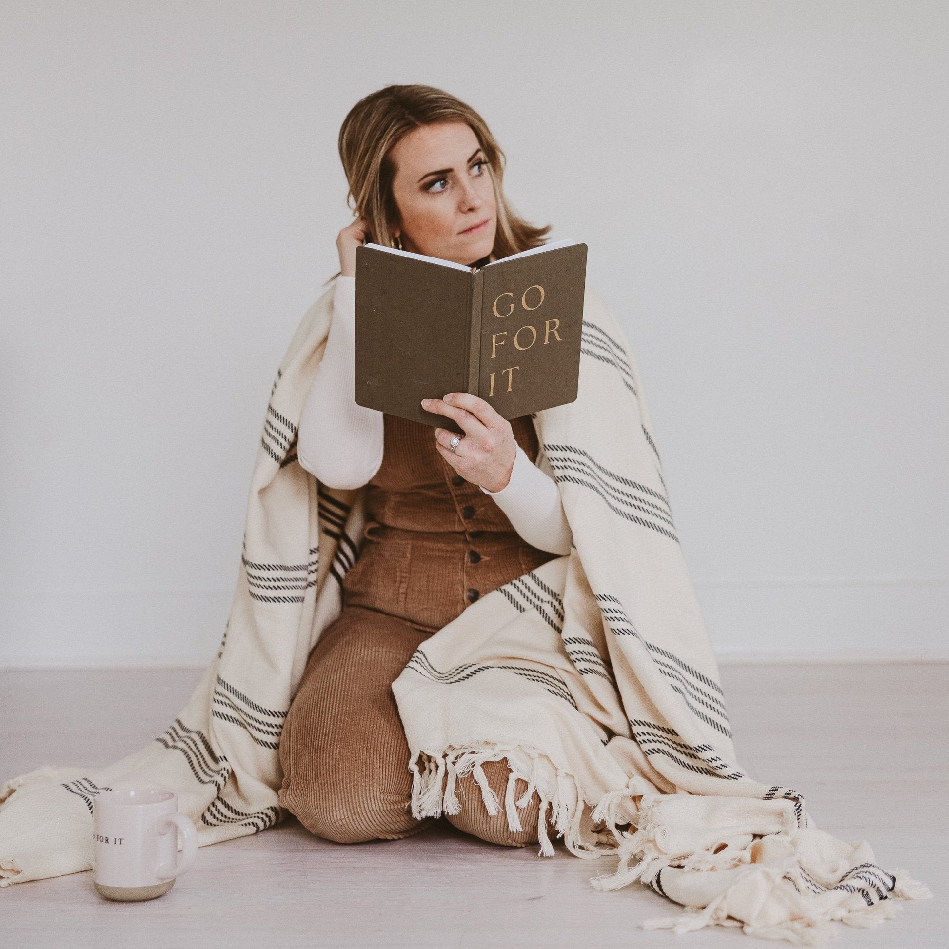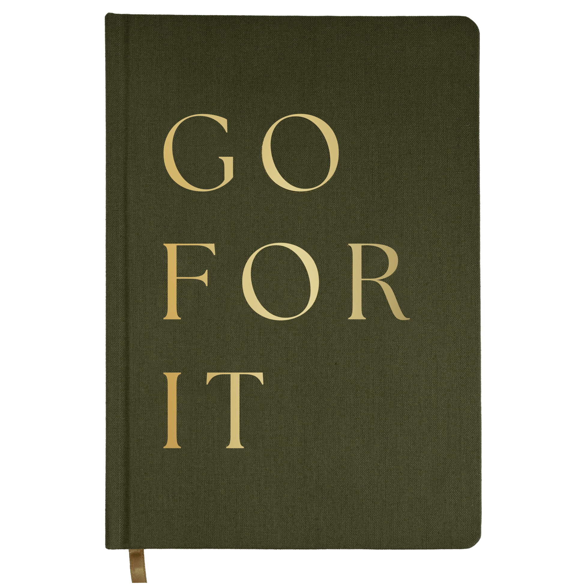 Write down all of your goals and dreams in our Go For It olive and gold fabric journal! With this chic, stylish, easy to write on notebook, there's no better place to jot down motivational notes, inspirational quotes, lists, and all of your great ideas! Perfect for work or school. This desk/office accessory makes a great gift. Pair it with our Go For It Devotional for the perfect gift!
