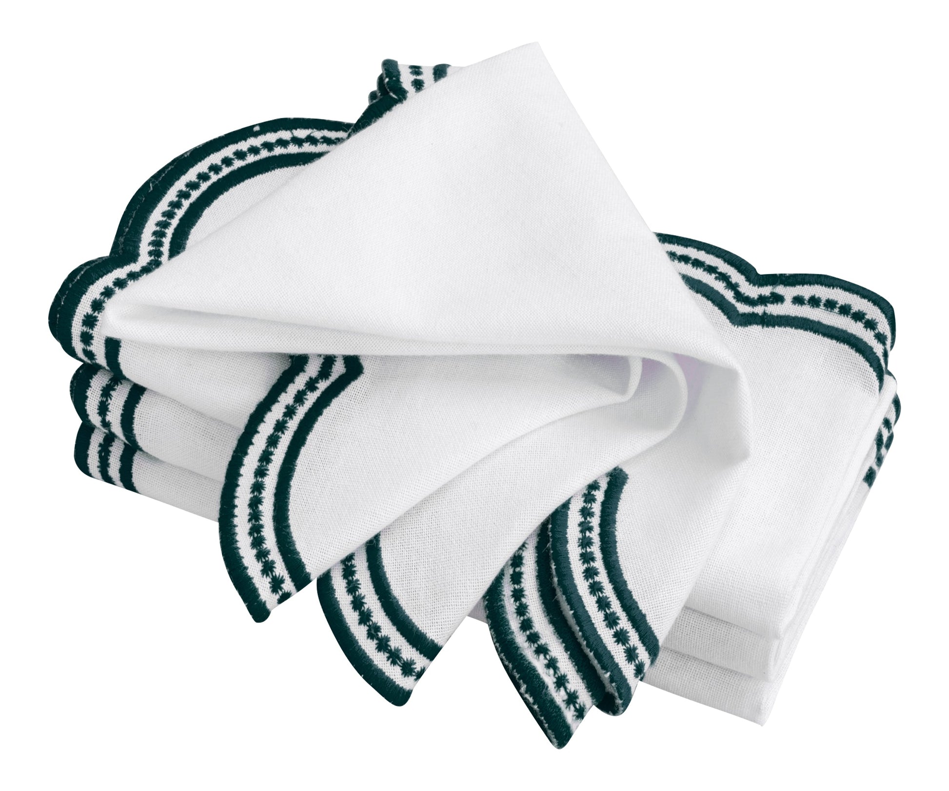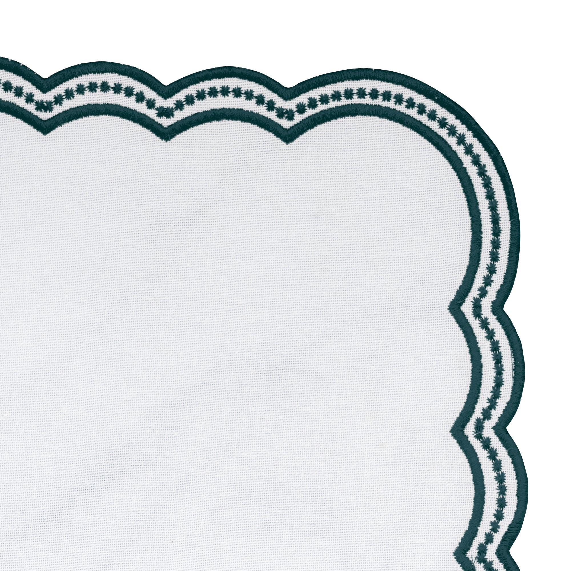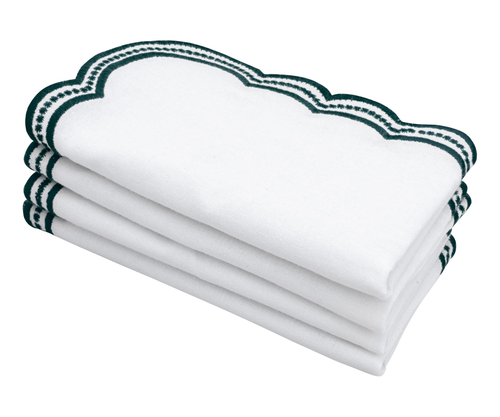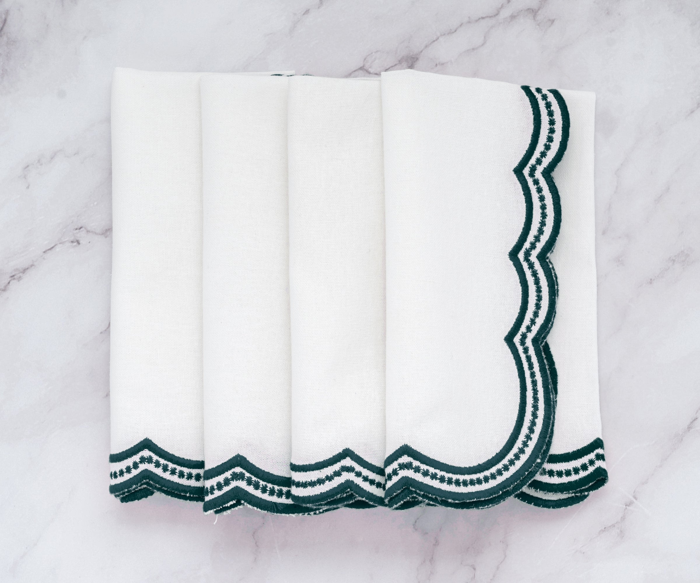Add a touch of elegance to your table with our Green Scalloped Embroidered Napkins. Made from 100% cotton, these scalloped napkins feature a crisp white base with intricate green scalloped embroidery, offering a sophisticated and timeless design. Soft, absorbent, and durable, they are perfect for weddings, dinner parties, and everyday dining.