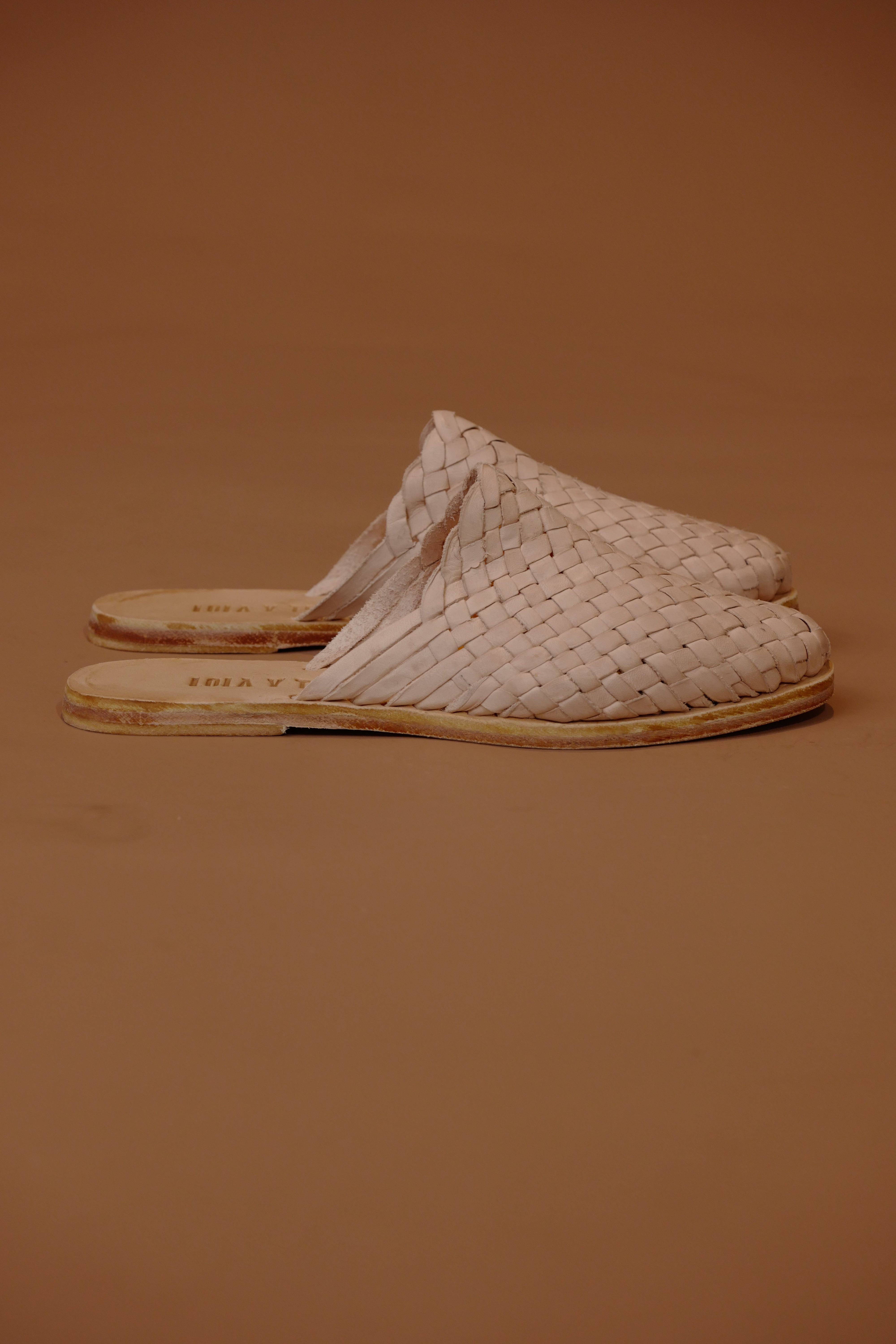 HAND WOVEN LEATHER SLIDES // CREAM