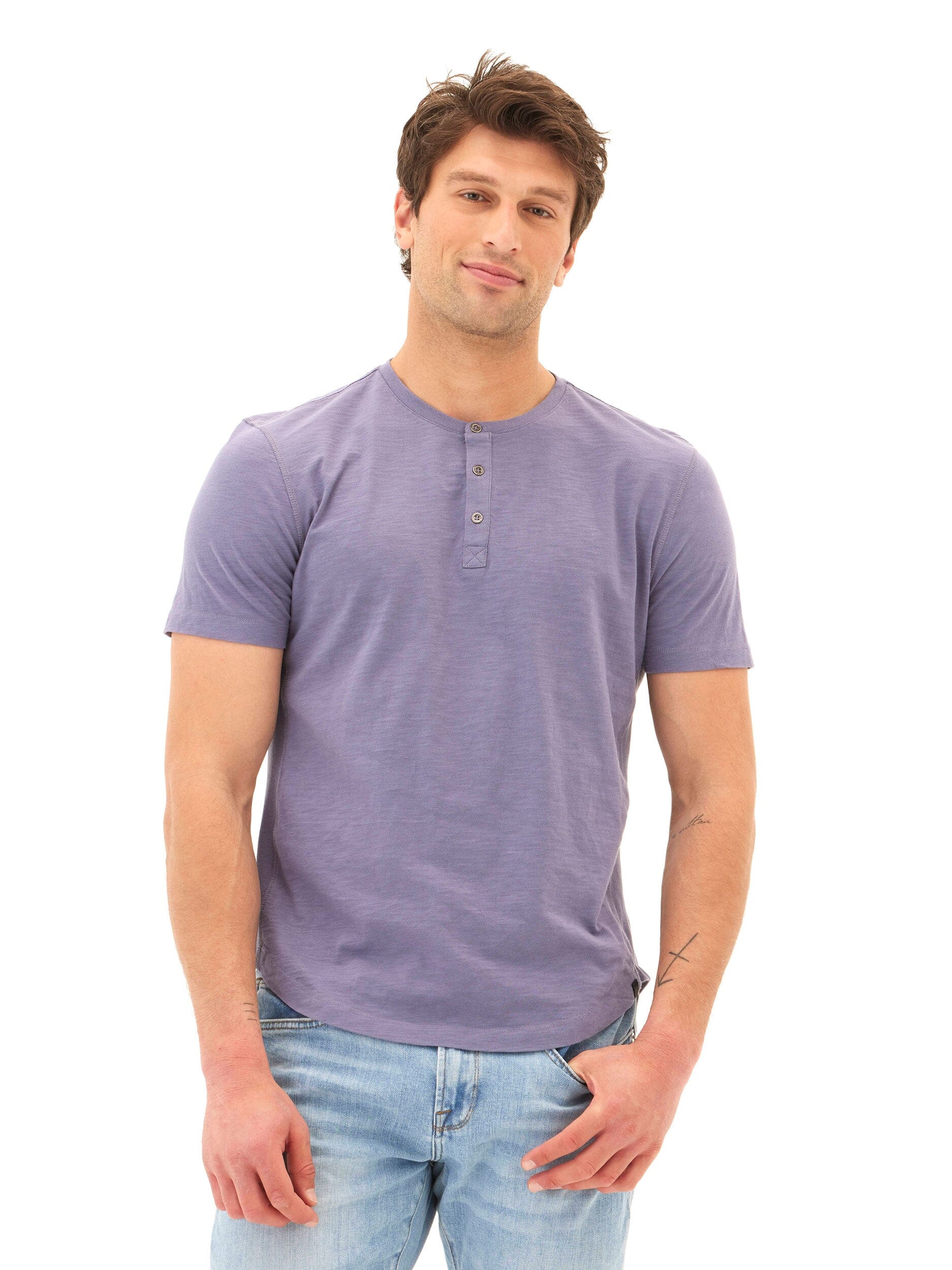 Elevate your everyday look with the Heath Slub Jersey Short Sleeve Henley. Made from 100% organic cotton, it boasts a textured look and elevated neckline. The three button detail adds a touch of sophistication to this versatile piece. Feel good and look good with this environmentally-friendly essential!
