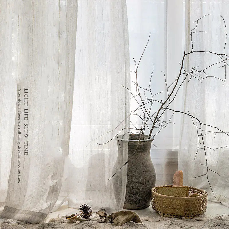 Japanese Nordic Cotton Linen Sheer Curtains for Balcony