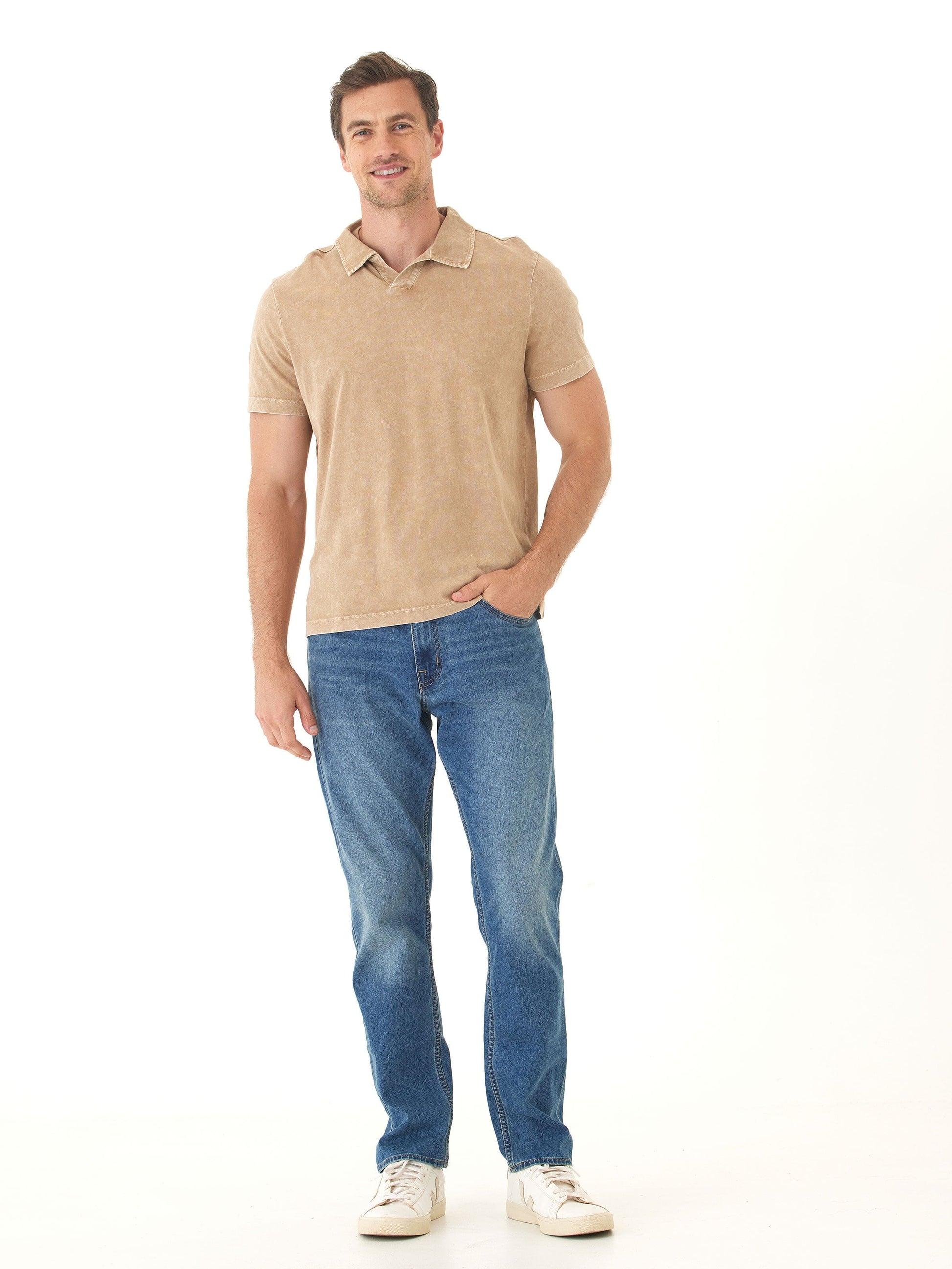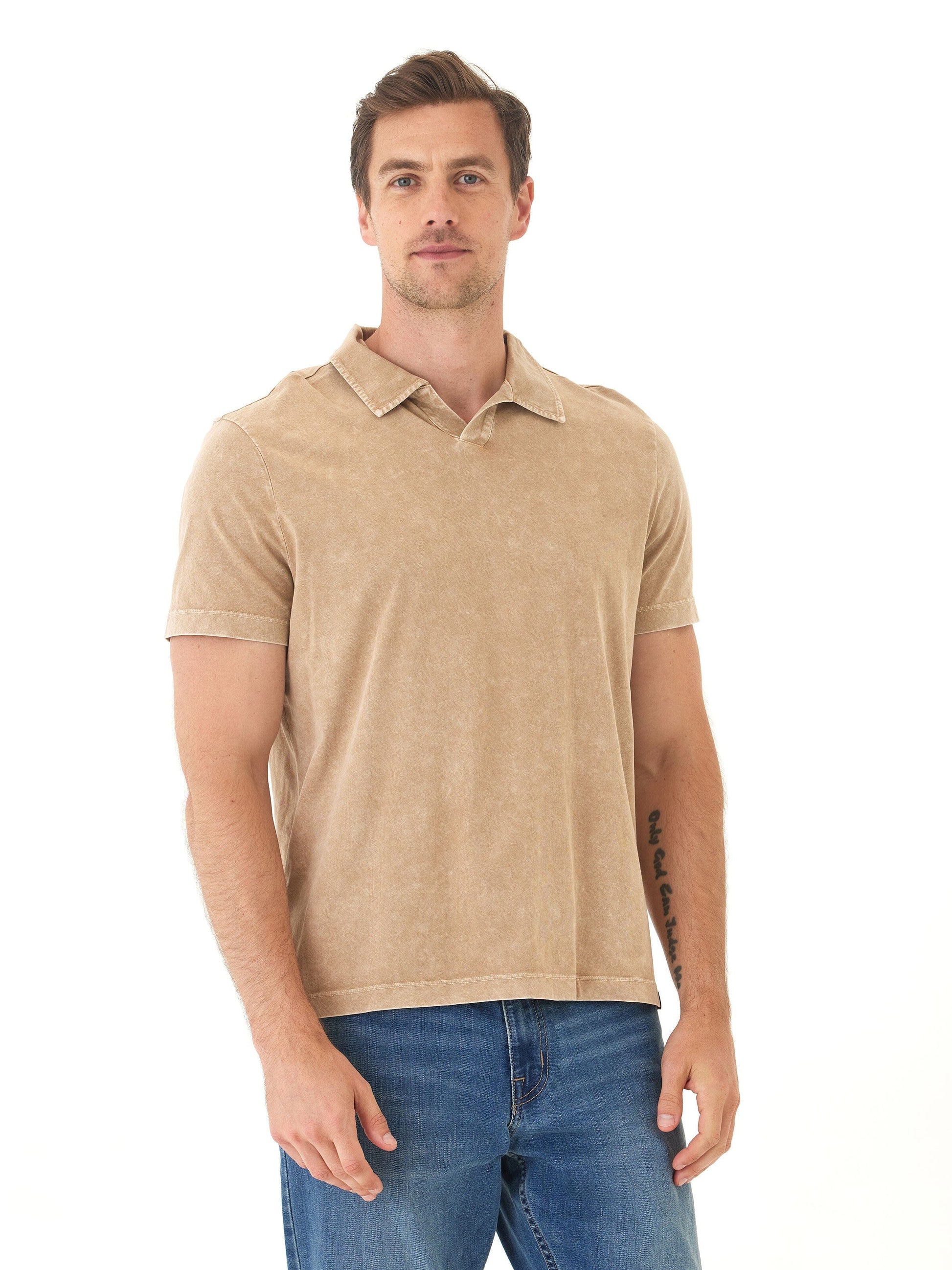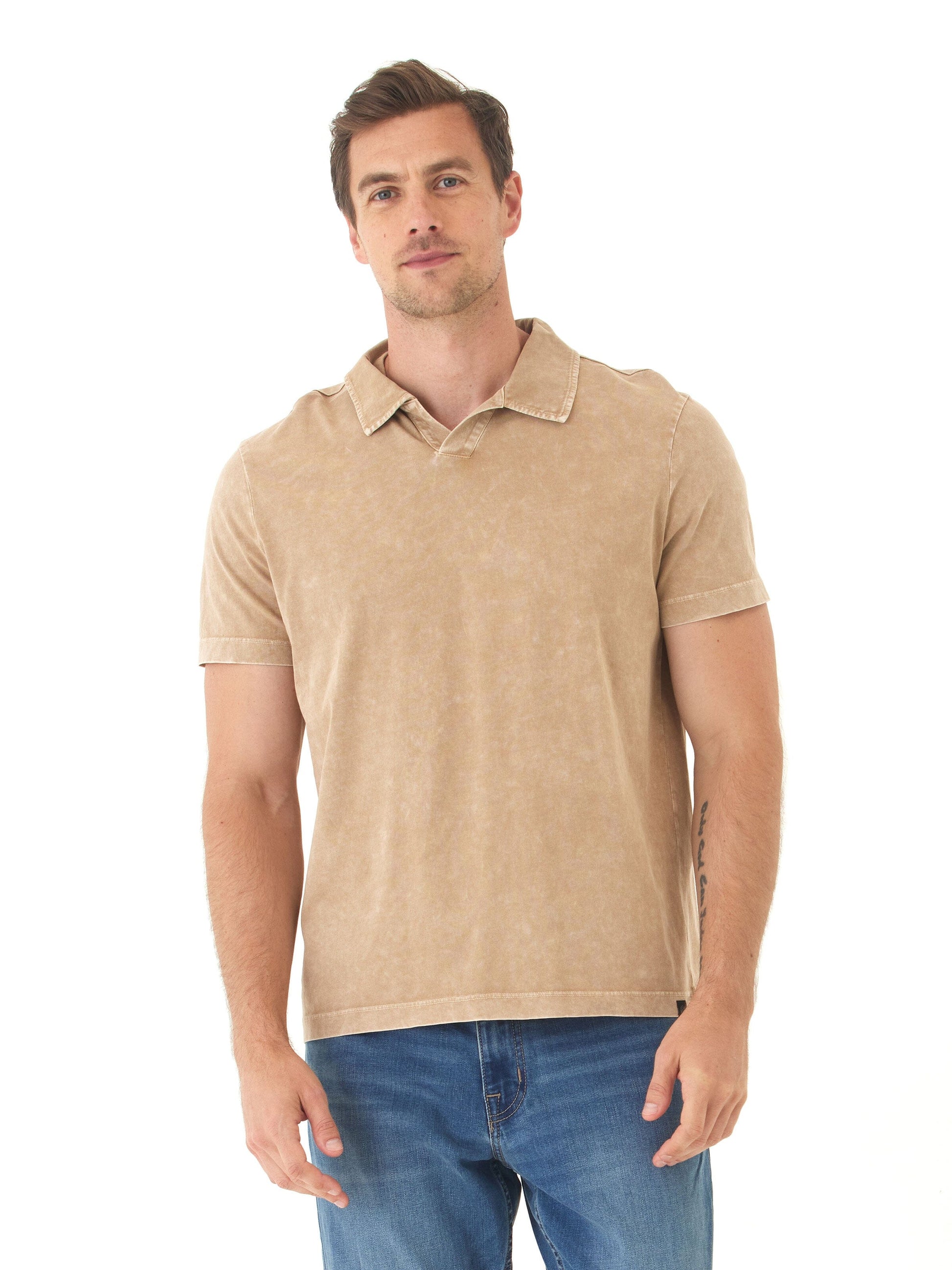 Casual polish meets lived-in comfort. This Mineral Wash Polo is crafted from soft, breathable cotton jersey and finished with a vintage-inspired wash for a perfectly broken-in look and feel. With a relaxed fit, open collar, and raw edge detailing, it’s an easy upgrade from your everyday tee—made for everything from weekend plans to work-from-home days.
