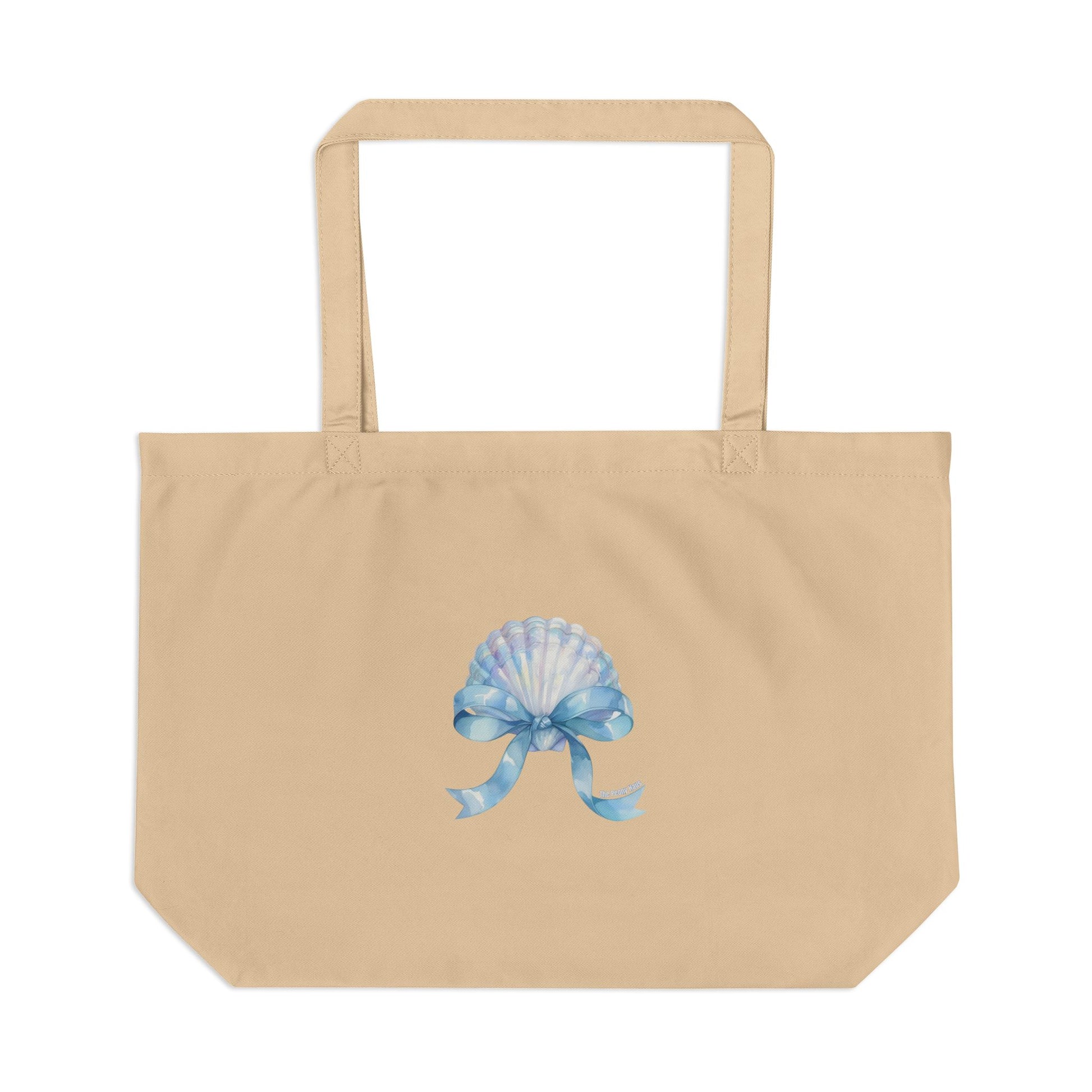Light, roomy, and consciously made — this large eco tote carries beach days, farmers’ market runs, and slow weekend errands with the same gentle confidence. A watercolor shell and ribbon sit centered on natural organic cotton, offering a soft, seaside whisper rather than shouty branding. The wide flat bottom keeps jars and produce upright. Long, durable straps sit comfortably over the shoulder so you can keep your hands free for a coffee, a camera, or a wandering pup. It’s an everyday companion for people who care about materials and the stories behind them.