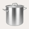 Large stainless steel pot (commercial size) 18/10 with lid, in a 3-ply construction, with a brushed finish capable of holding a large volume. Available in three sizes.