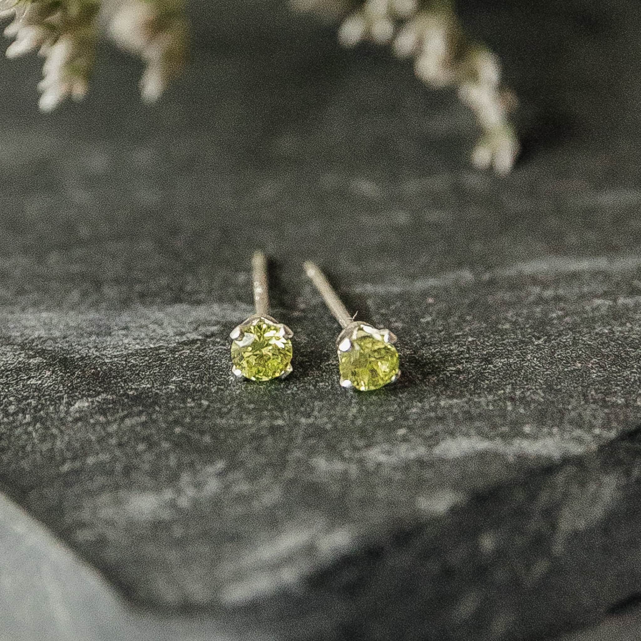 Add a little sparkle to your earring stack with our minimal yet bold lime green crystal studs. These dainty earrings are 14k gold filled or sterling silver and the perfect addition to your everyday look.