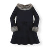Long Sleeve Ponte Dress with Faux Fur - Baby