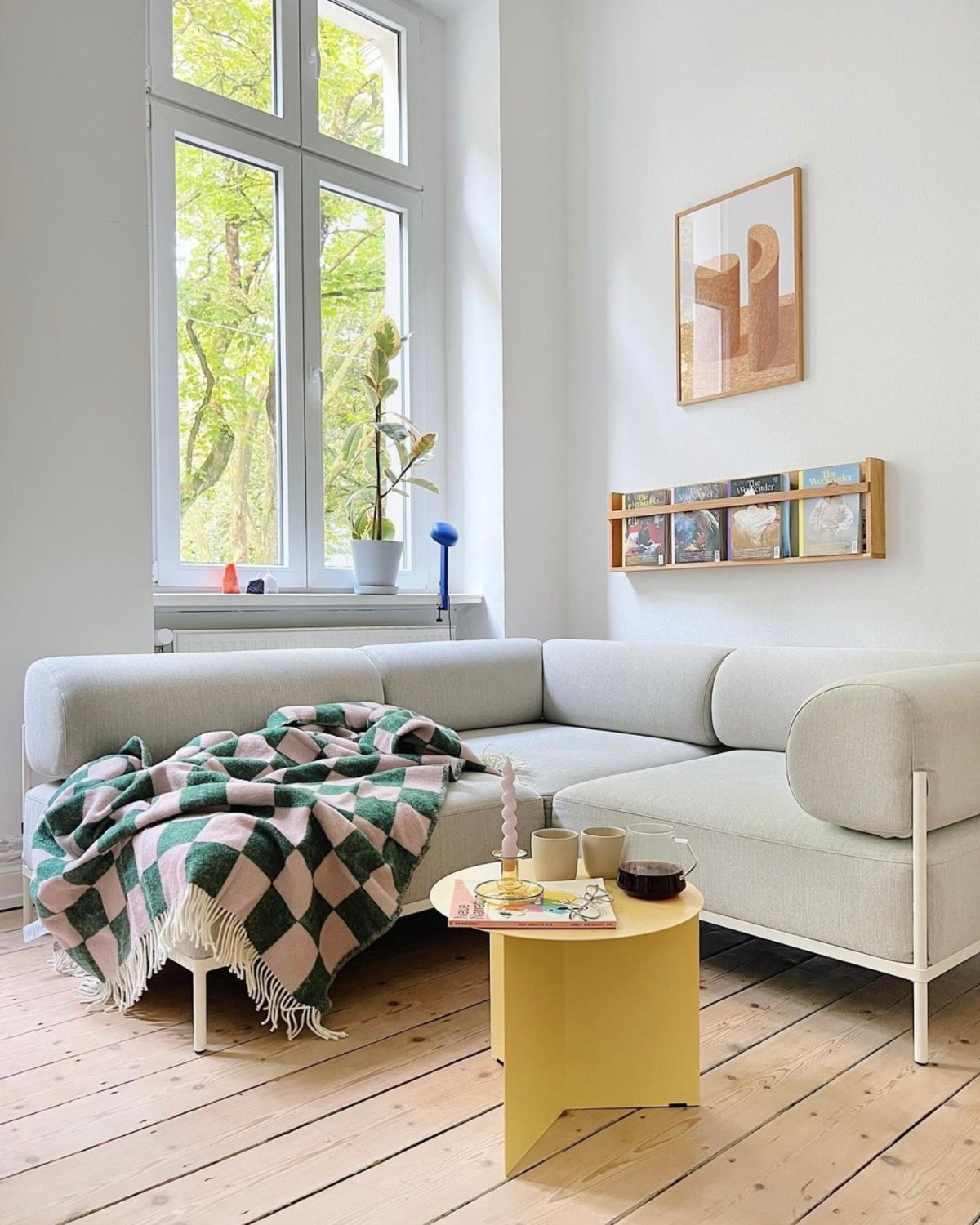 The CHECKERBOARD Blanket  is jacquard-woven from 100% New Zealand wool with fringes on the short sides. A thick and super-soft blanket that is mirror-inverted on the opposite side. The reversible pattern allows you to swap between two different moods. Measuring 4.3 x 6.6 ft, it's big enough to keep two warm. An instant upgrade to the living room.