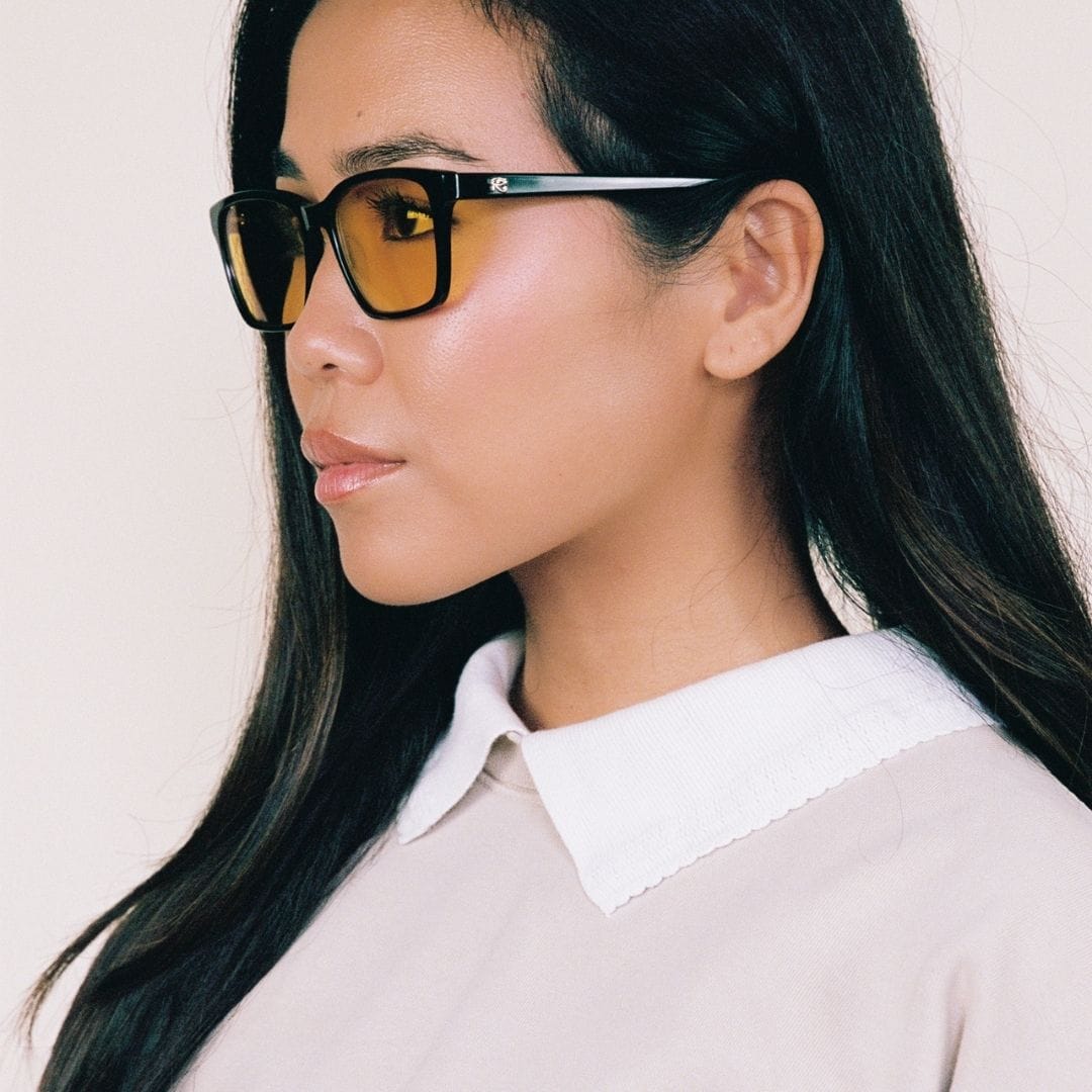 The Look: A sporty rectangular frame with a straight browline, sleek arms, and a clear saddle bridge. This black frame with a subtle glossy-finish is for those looking to make a statement.