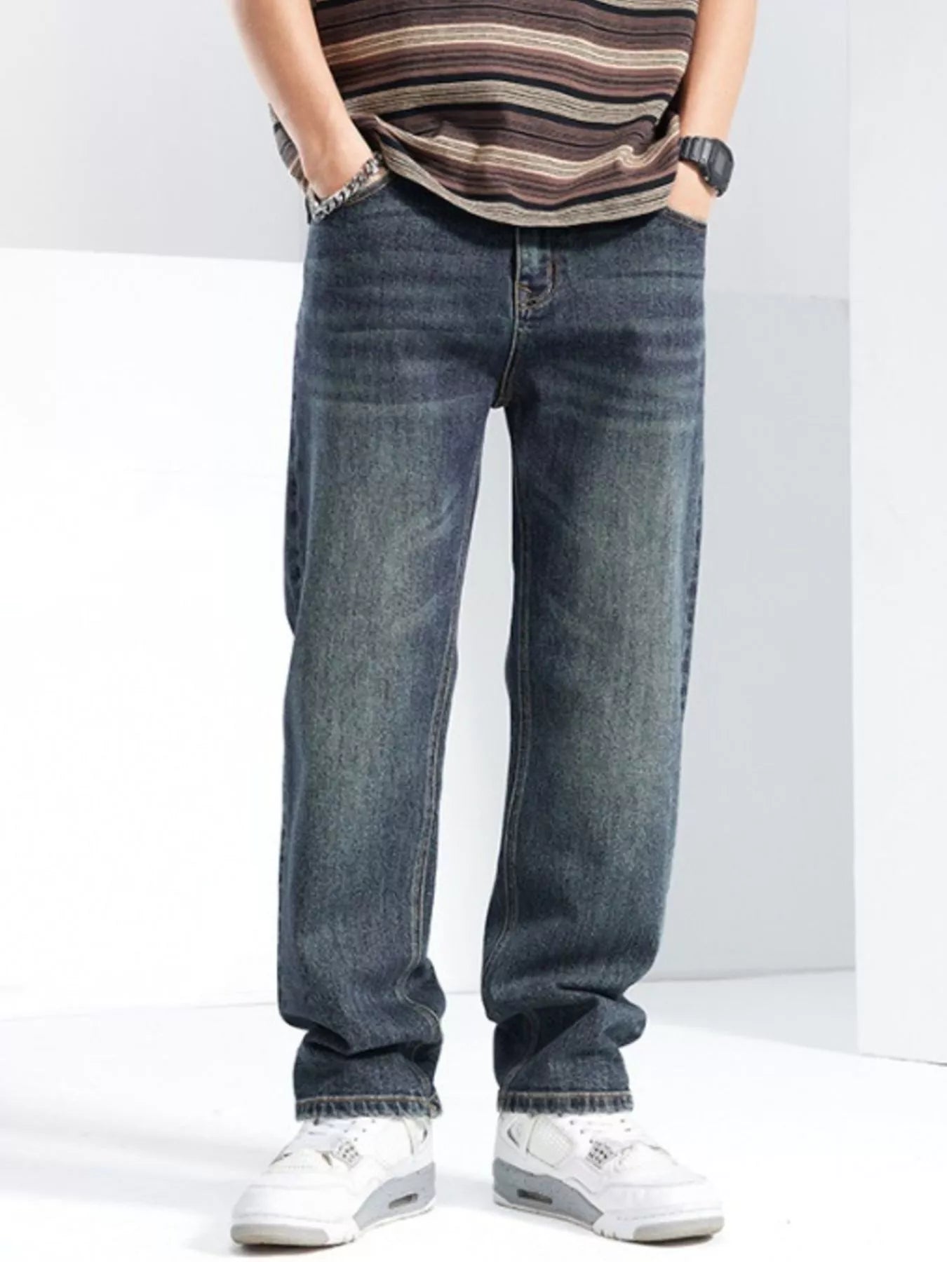 Men's Washed Wide Leg Jeans - 94.2% cotton