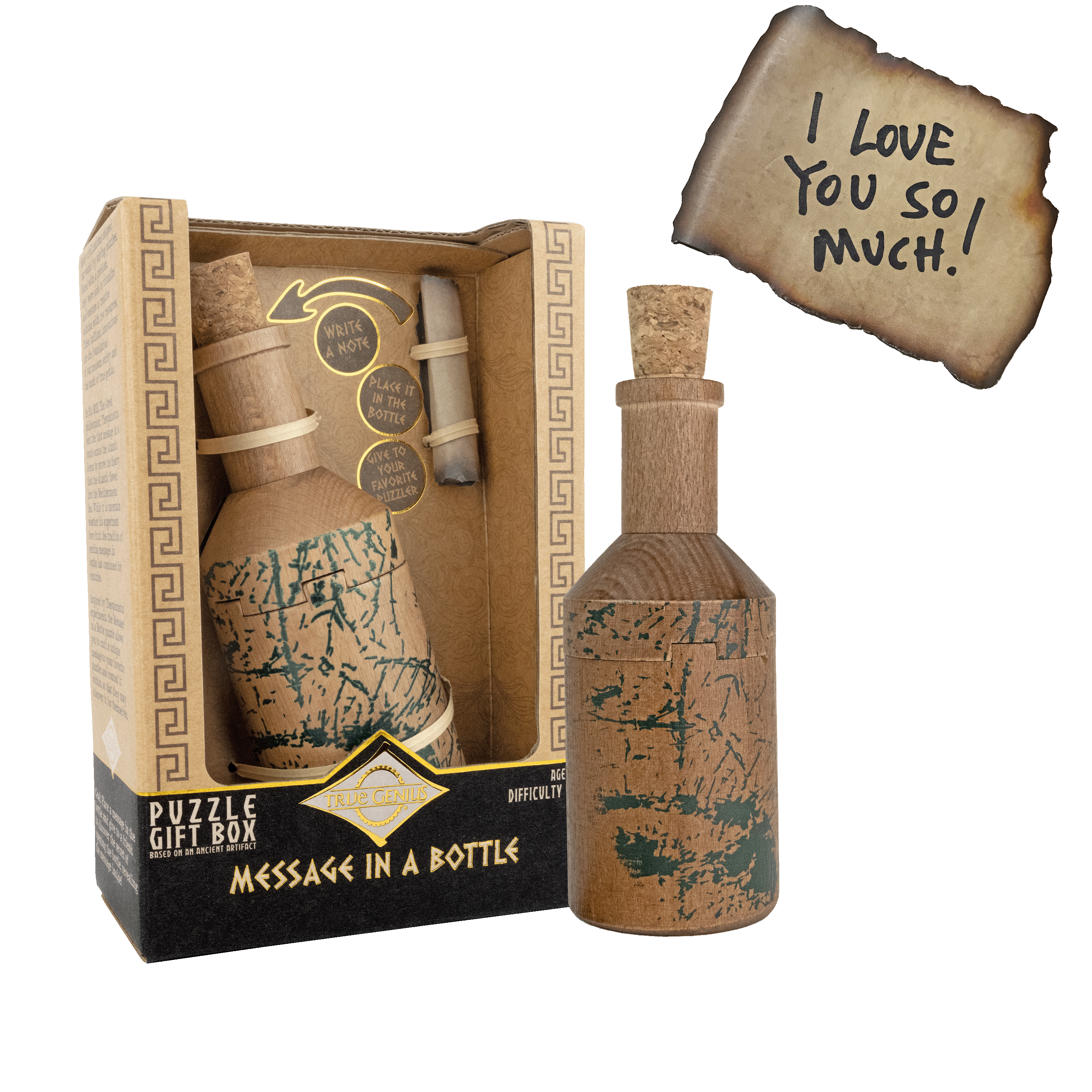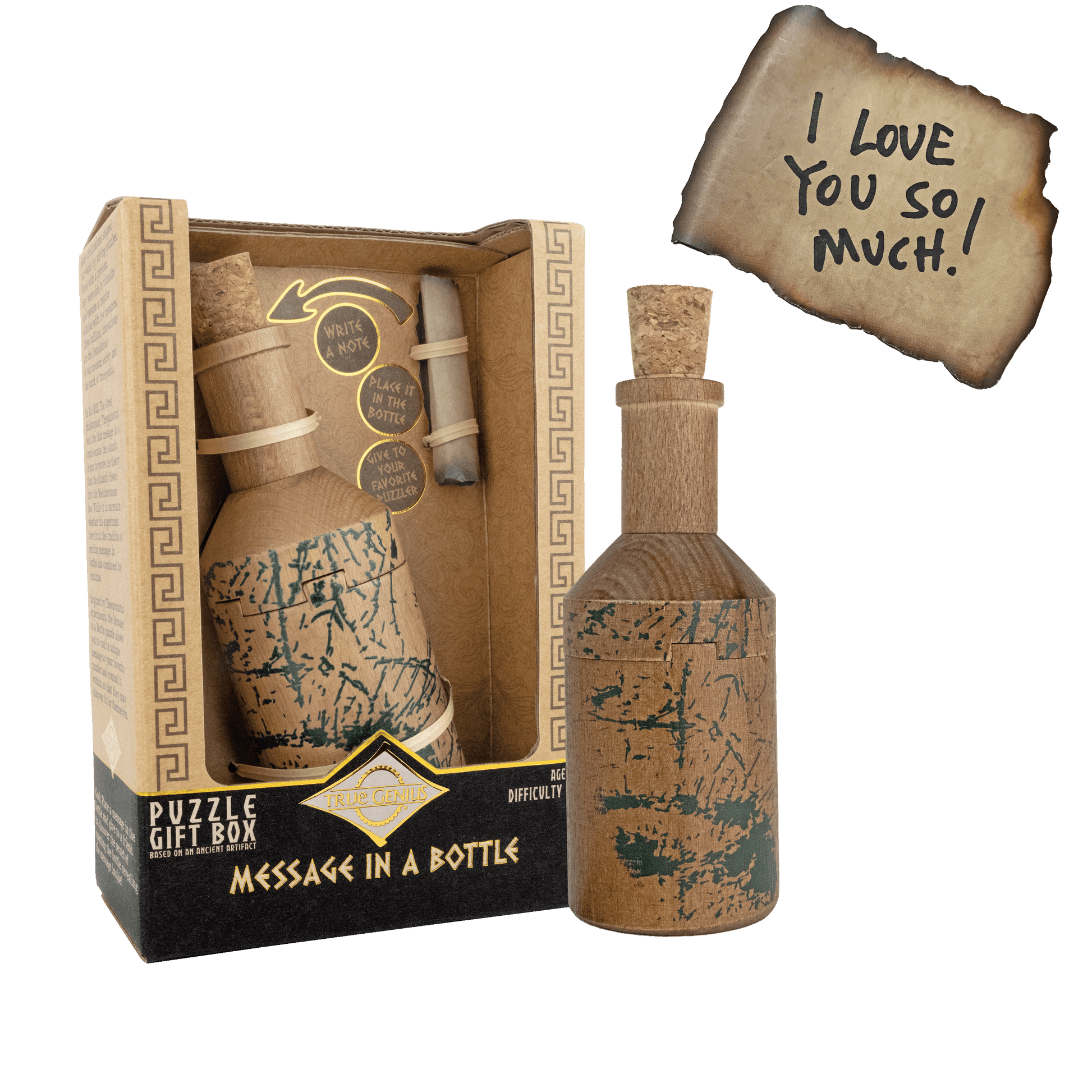 Make gifting unforgettable with Message in a Bottle, a brainteasing puzzle that turns any note into a hidden treasure. Write a special message on the provided scroll, roll it up, and insert it into the bottle. Once sealed, the message becomes trapped and can only be retrieved by solving the puzzle’s intricate mechanism.