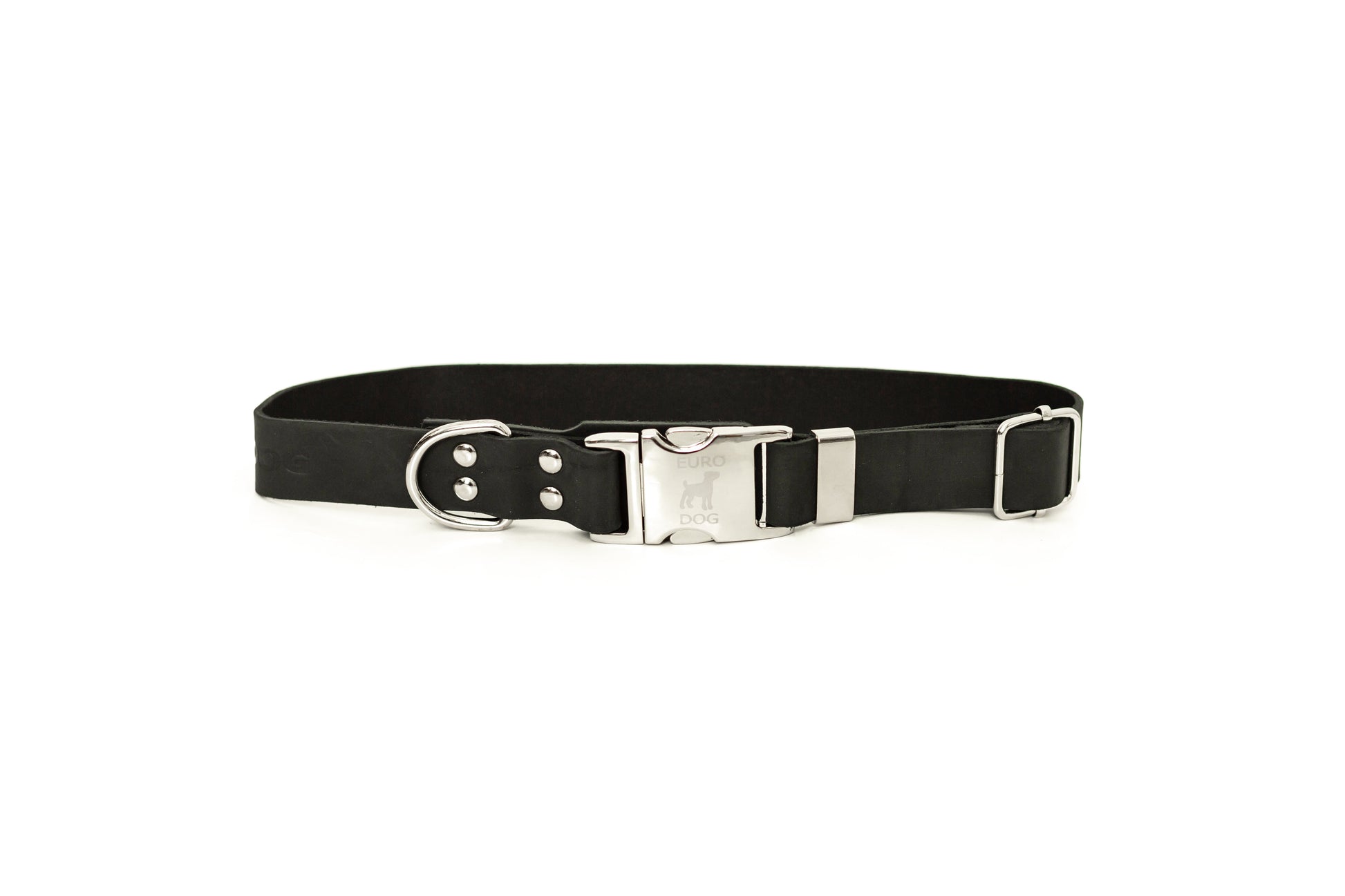 Modern Style Quick-Release Midnight Black Leather Dog Collar