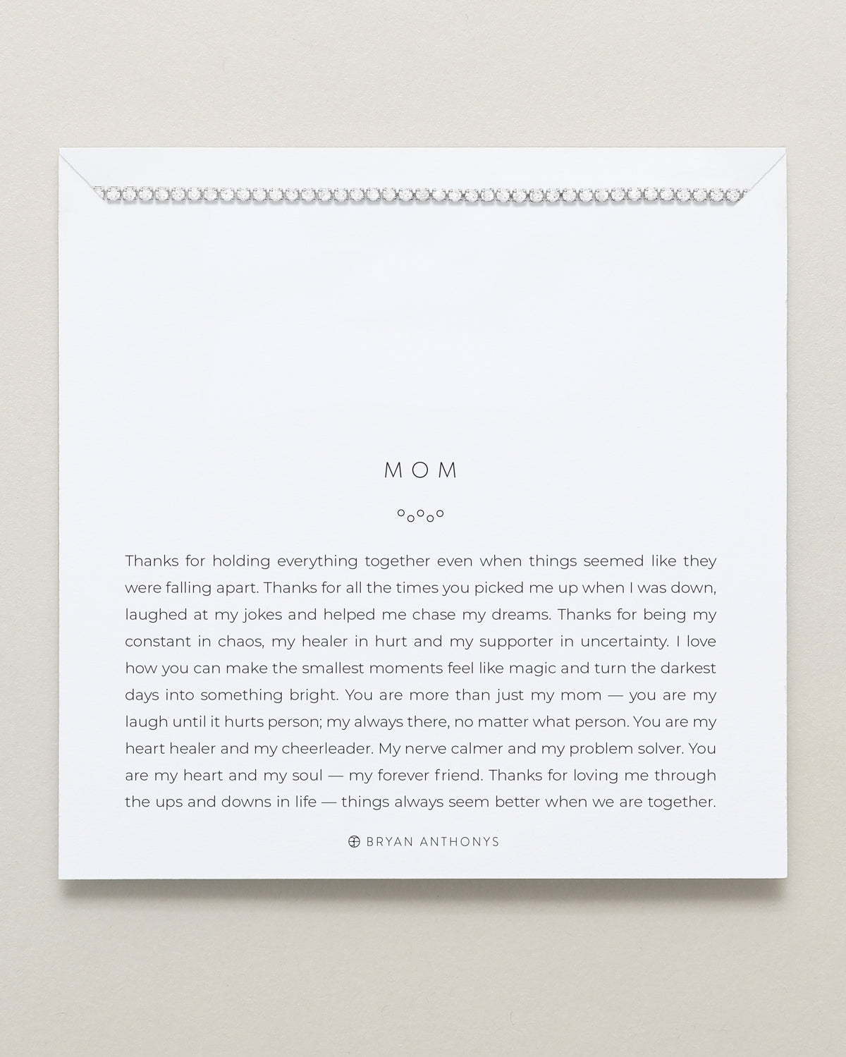 Thanks for holding everything together even when things seemed like they were falling apart. Thanks for all the times you picked me up when I was down, laughed at my jokes and helped me chase my dreams. Thanks for being my constant in chaos, my healer in hurt and my supporter in uncertainty. I love how you can make the smallest moments feel like magic and turn the darkest days into something bright. You are more than just my mom — you are my laugh until it hurts person; my always there, no matter what person. You are my heart healer and my cheerleader. My nerve calmer and my problem solver. You are my heart and my soul — my forever friend. Thanks for loving me through the ups and downs in life — things always seem better when we are together.