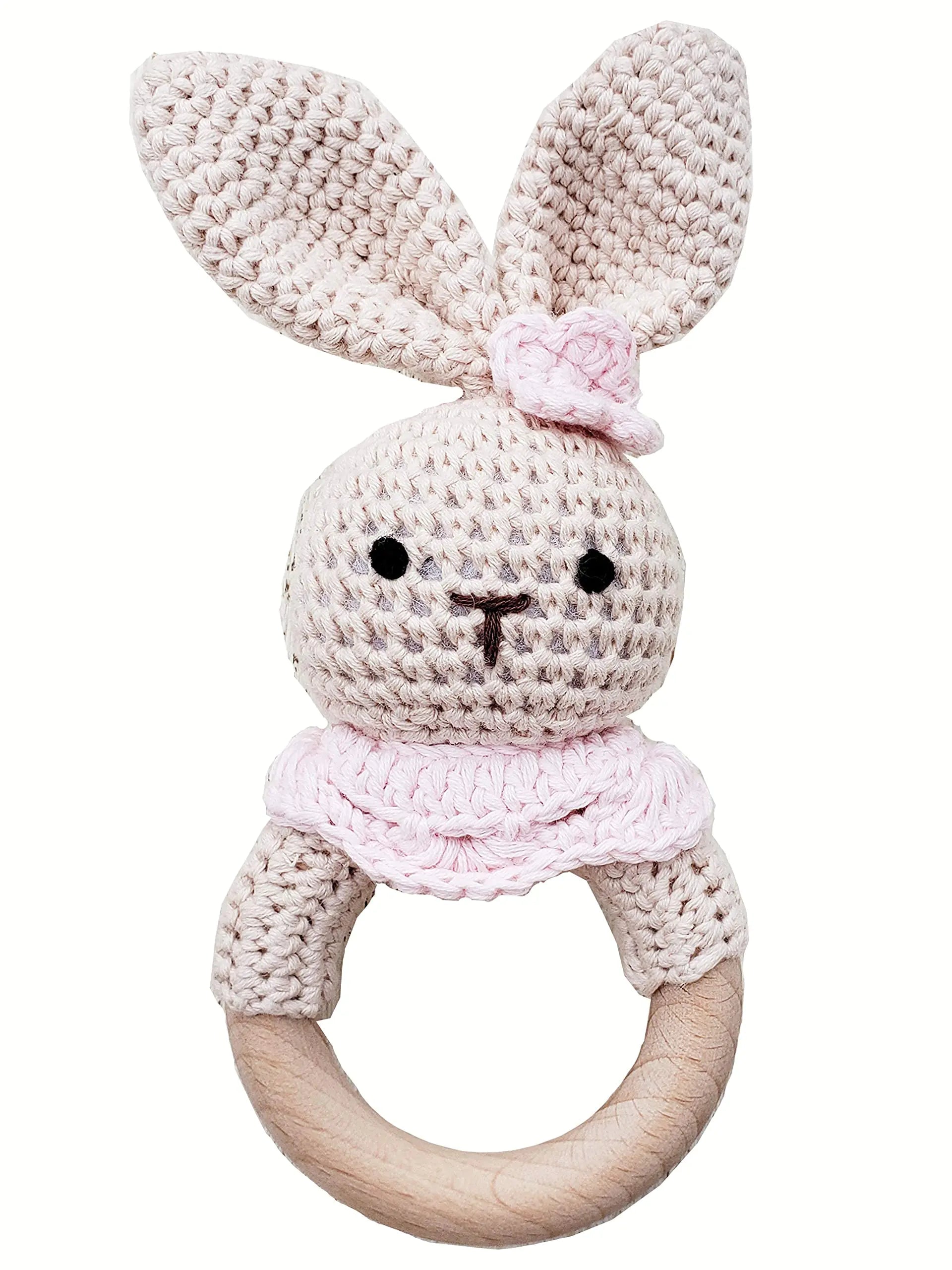 Natural Crochet Teether Toy Rattle - Handmade, Bunny