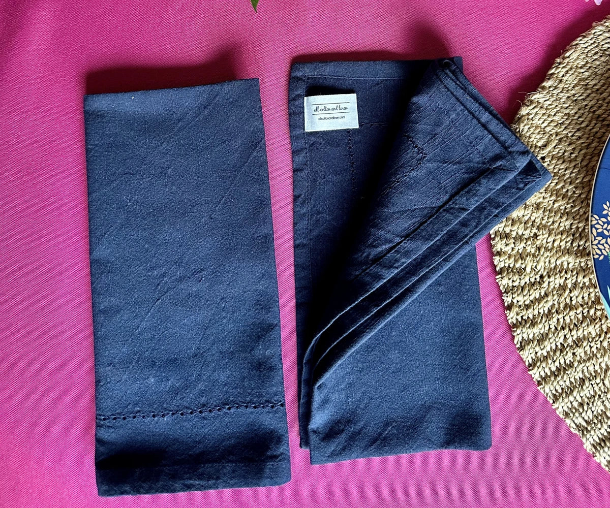 Navy Blue Hemstitch Napkins