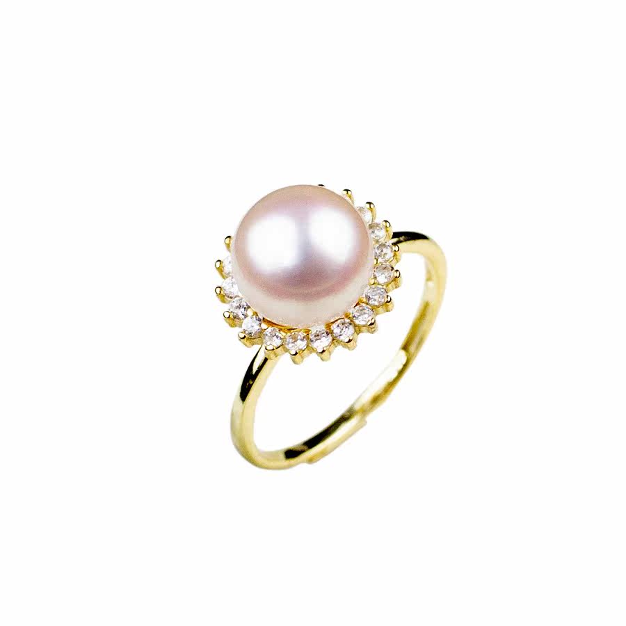 Sunflower Round Mirror Pearl Ring with Freshwater Pearl