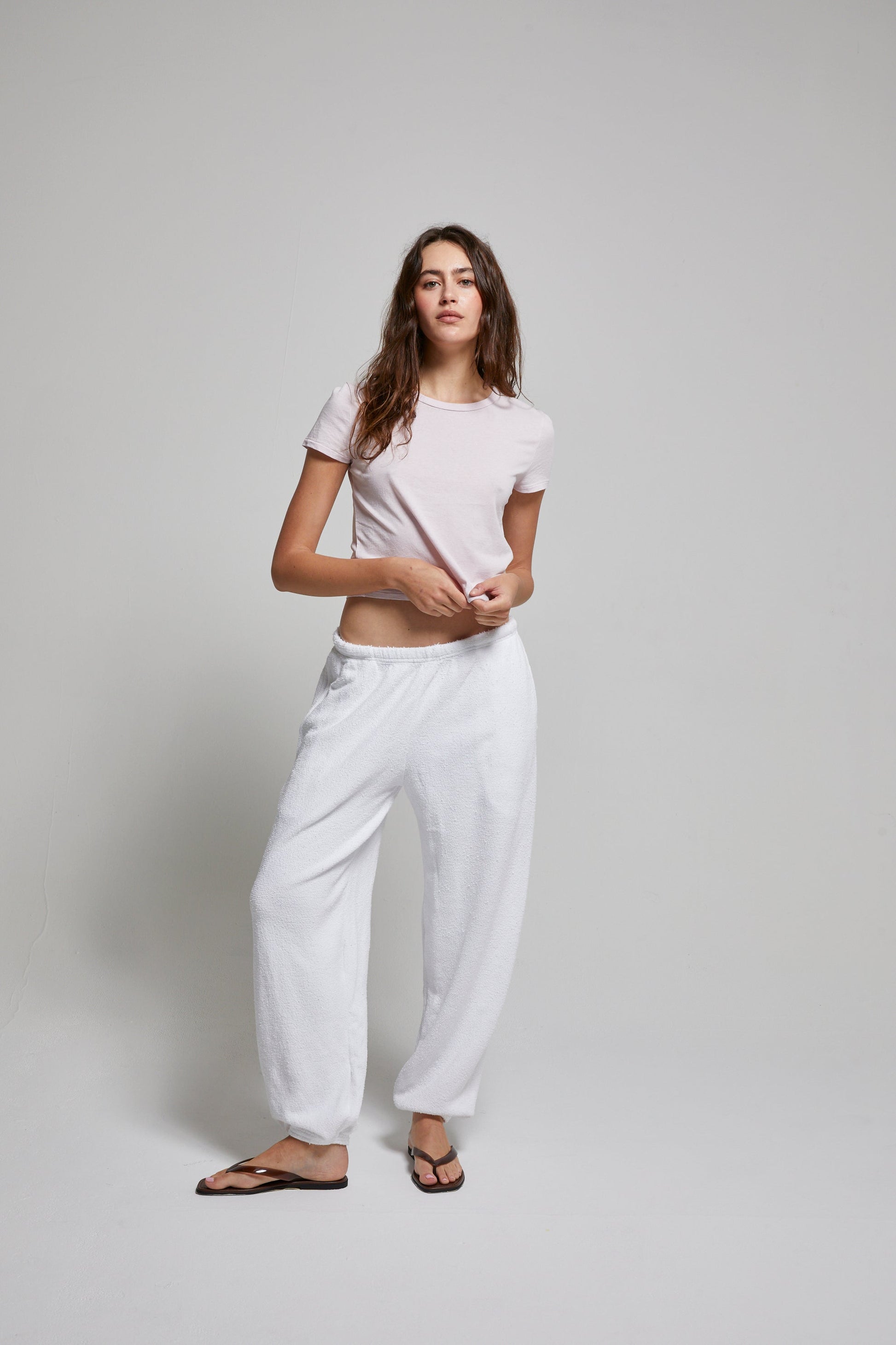 The Noe features an intentionally shrunken baby fit. Our high twist feather weight Japanese cotton jersey creates a lightweight yet durable "pill-resistant surface" that stays looking fresh wash after wash.