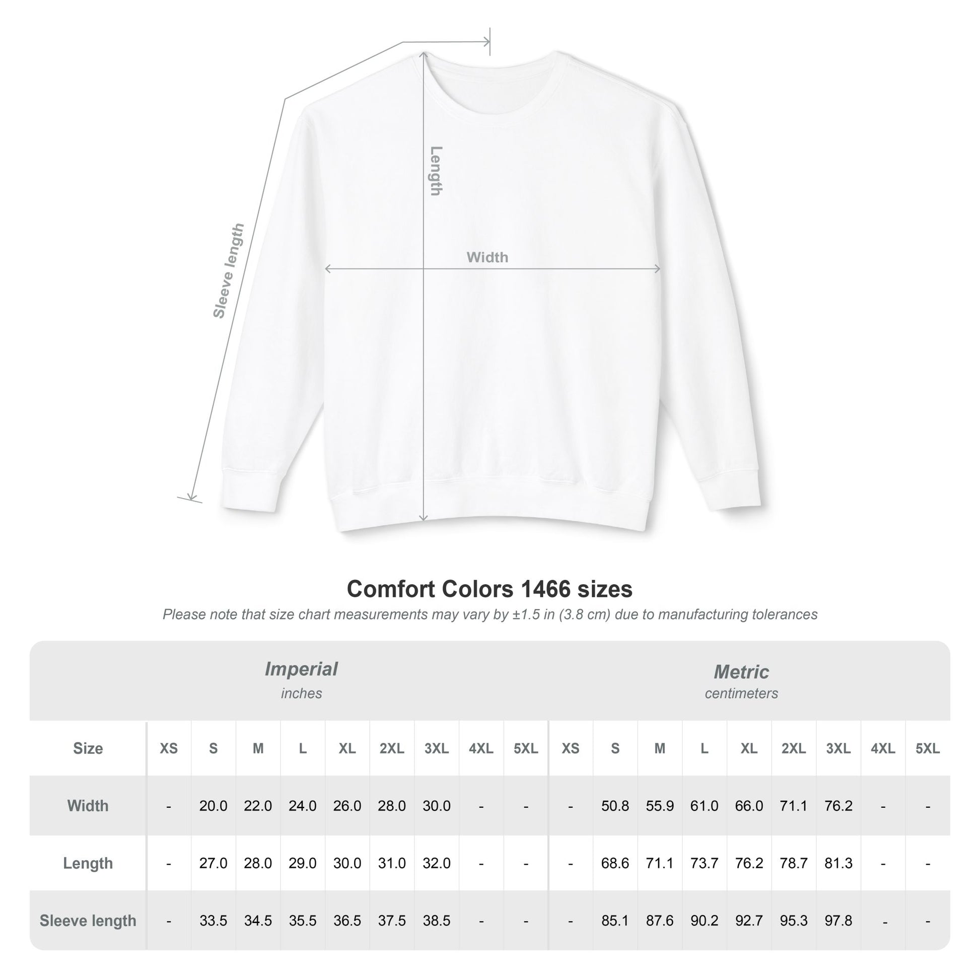 Sleeve length from center back, in 33.50 34.50 35.50 36.50 37.50 38.50