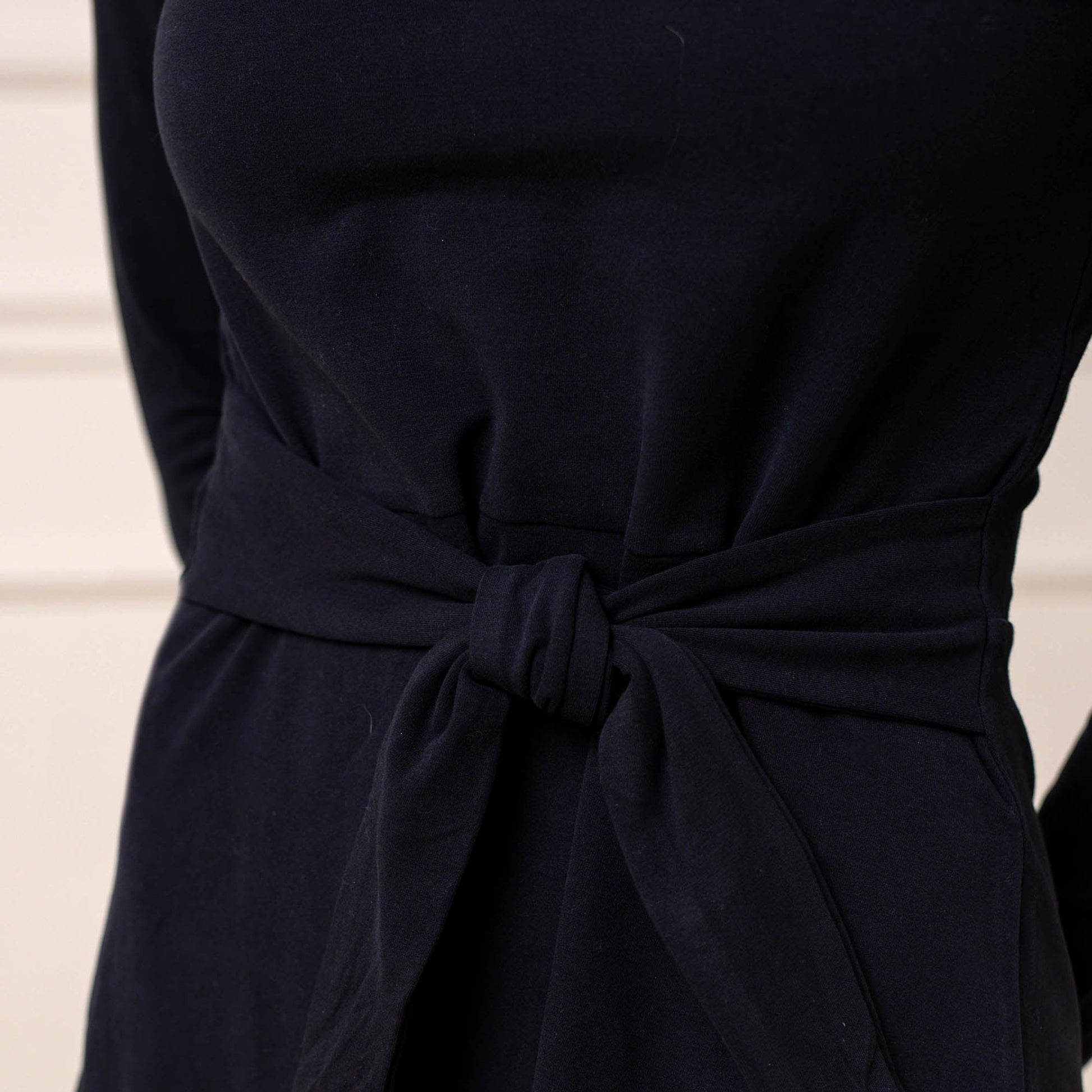 Organic Long Sleeve Tie-Waist Knit Dress - 95% Cotton