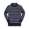 Our refined long sleeve mock neck sweater in soft organic cotton gives your girl the sophisticated style she needs this fall and winter season. Features a subtle mock neck with gold button detail, delicate striping, and rib knit trim. Looks perfectly chic paired with our assortment of organic cotton skirts, jumpers, and leggings!