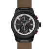In this Otto Chrono style, an edgy statement is made with an all black-plated case and bezel in solid stainless steel featuring a 2-eye chronograph movement with a black carbon fiber pattern on the dial. The strap is fabricated in straight edge construction in brown artisanal leather.