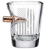 This 2oz shot glass is hand-embedded with a real, lead-free .308 bullet and custom laser etched with a distressed American Flag design.